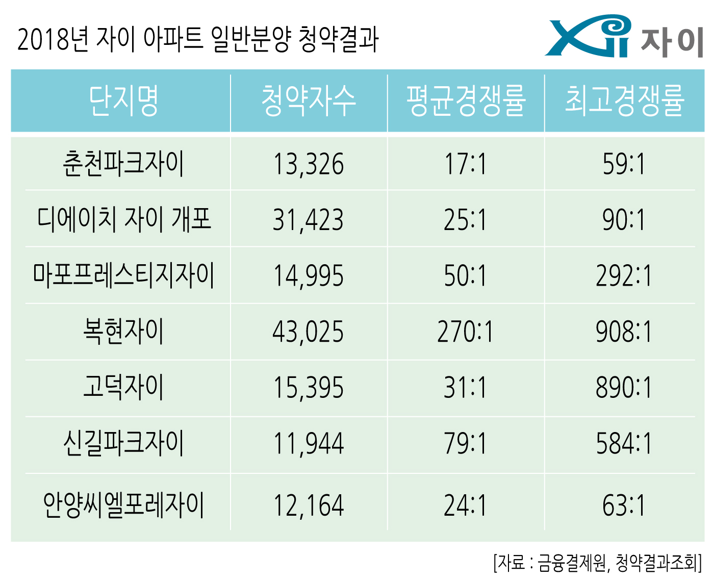 | ↑↑ 2018년 자이 일반분양 청약결과 |