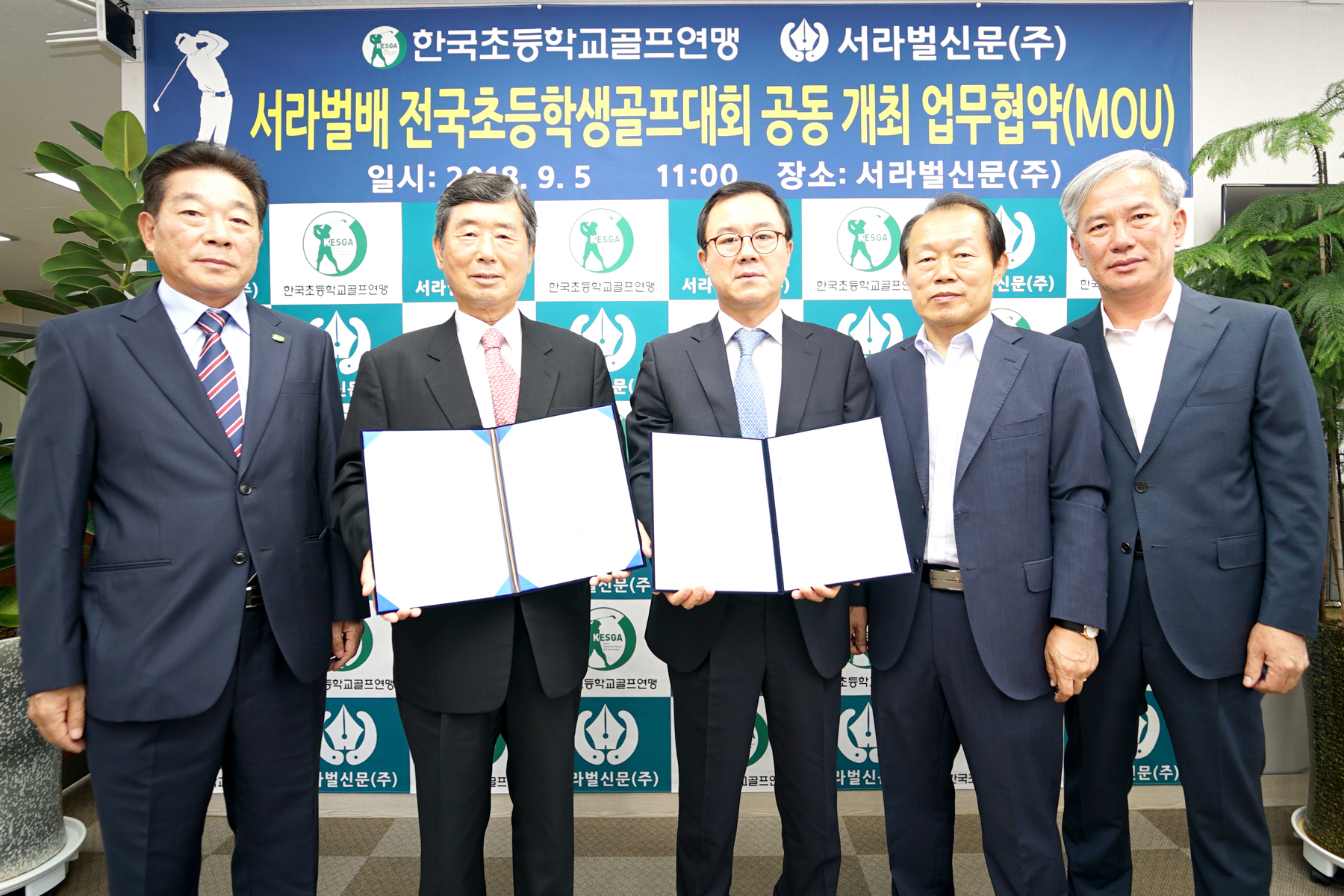 서라벌신문(주)(대표이사 김현관)는 지난 5일 강전항 한국초등학교골프연맹 회장과 권청원 연맹 전무이사 겸 경기위원장이 참석한 가운데, 국내 골프 유망주 조기양성 및 지역경제 활성화를 위한 ‘서라벌배 전국초등학교 골프대회’ 공동개최를 위한 업무협약을 체결했다.