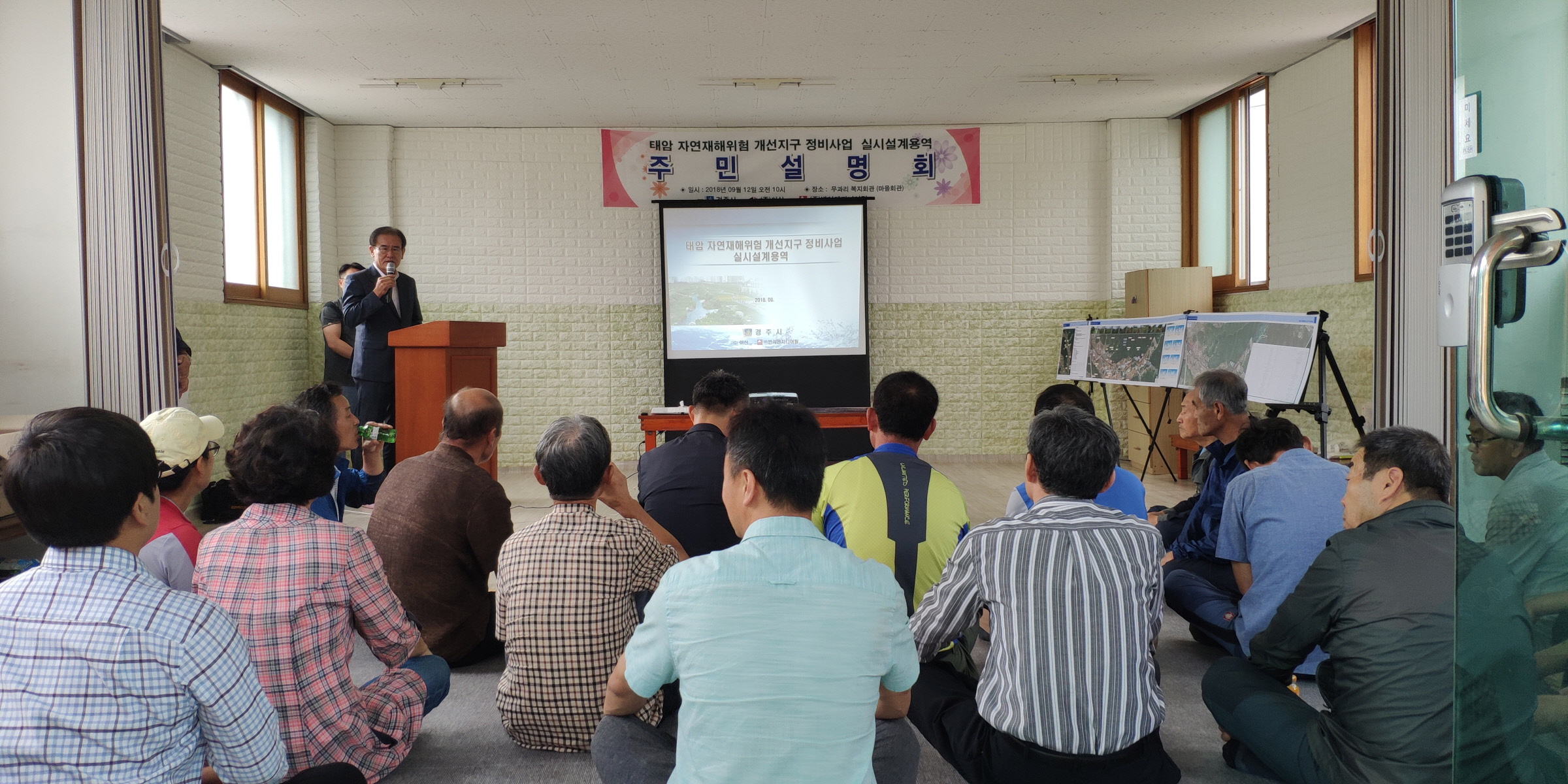 【경주=미디어인경북】김동철 기자 = 경주시는 12일 현곡면 무과리 주민복지회관에서 래태2리 및 무과리 지역주민 50여명을 대상으로 태암지구 자연재해위험개선지구 정비사업 추진에 대한 주민설명회를 열었다.