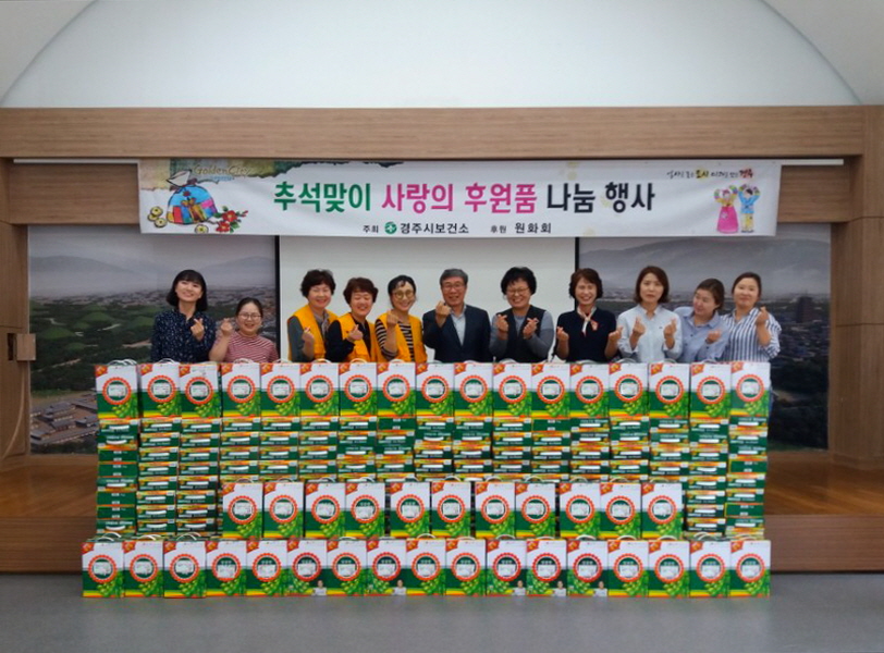 김장희 보건소장은 “추석을 맞은 주위의 어려운 이웃들에게 온전히 전달할 것이라며 매년 함께하는 ‘원화회’의 큰마음에 깊이 감사드리며, 앞으로도 지역민과 소통하는 방문보건서비스를 위해 자원봉사자와의 연계․협력해 나가겠다.”고 전했다.