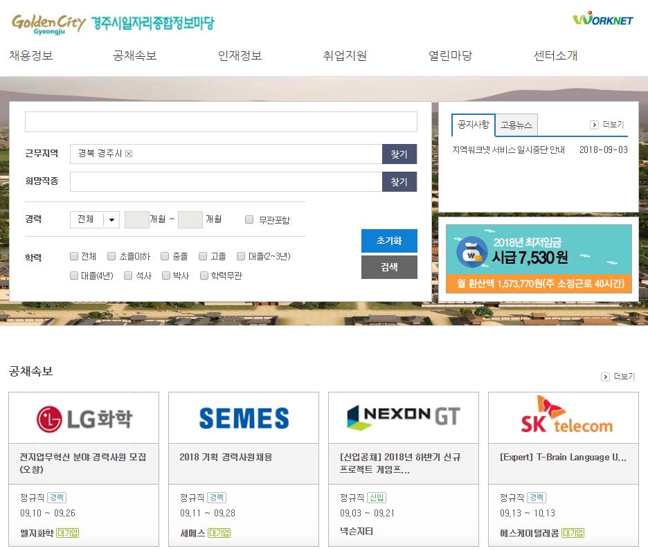 【경주=미디어인경북】김동철 기자 = 경주시(시장 주낙영)에서 최근 고용노동부와 한국고용정보원이 운영하는 취업정보사이트인 ‘워크넷’을 기반으로 경주시일자리종합정보마당(http://gyeongbuk.work.go.kr/gyeongju/)을 개설했다.