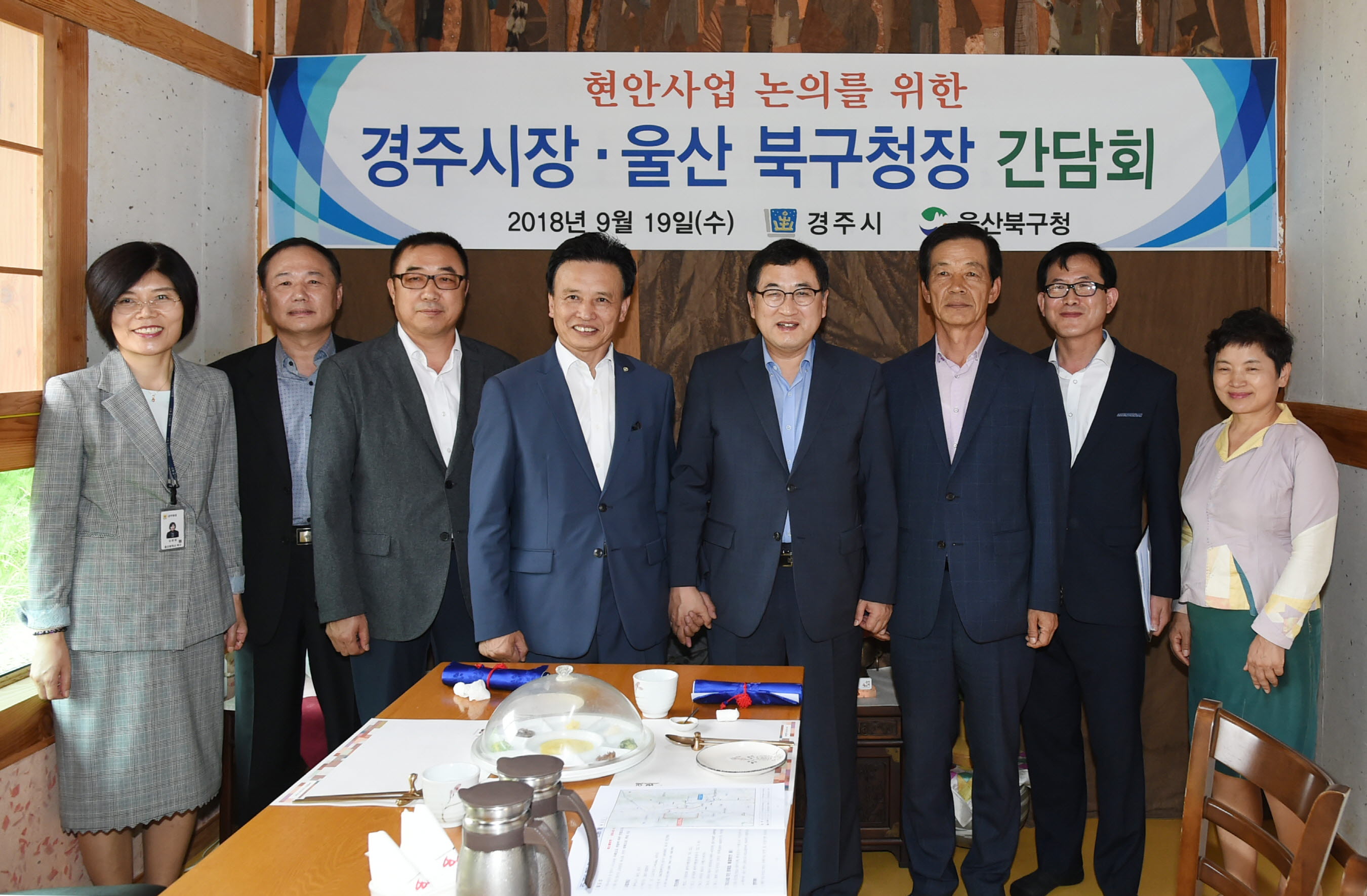 | ▲주낙영 경주시장, 울산 북구청과 주민 현안사항 해결 머리 맞대 (사진 오른쪽 네번째 주낙영 경주시장, 왼쪽 네번째 이동권 울산 북구청장) |