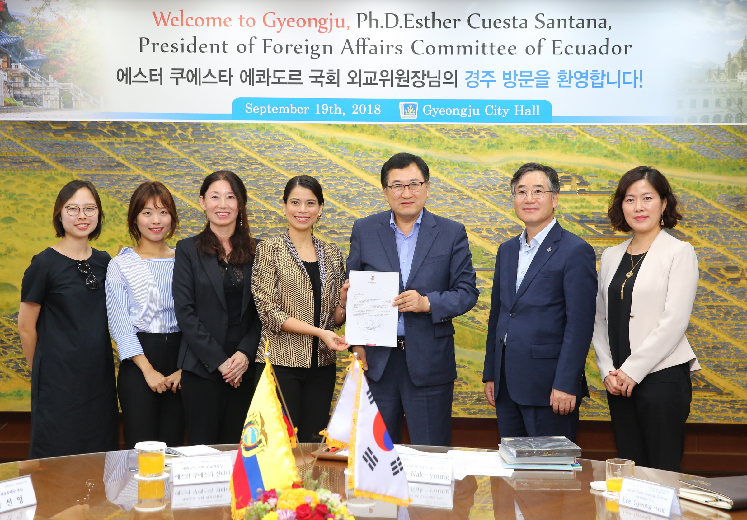경주시는 19일 에스터 쿠에스타 에콰도르 국회 외교위원장이 주낙영 경주시장을 직접 만나 쿠엥카 시장의 친서를 전달했다고 밝혔다.