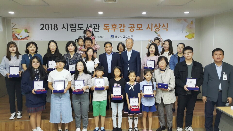 【경주=미디어인경북】김동철 기자 = 경주시립도서관(관장 최용태)은 지난 22일 문화강좌실에서 ‘2018년 독후감 공모 시상식’을 열었다.
