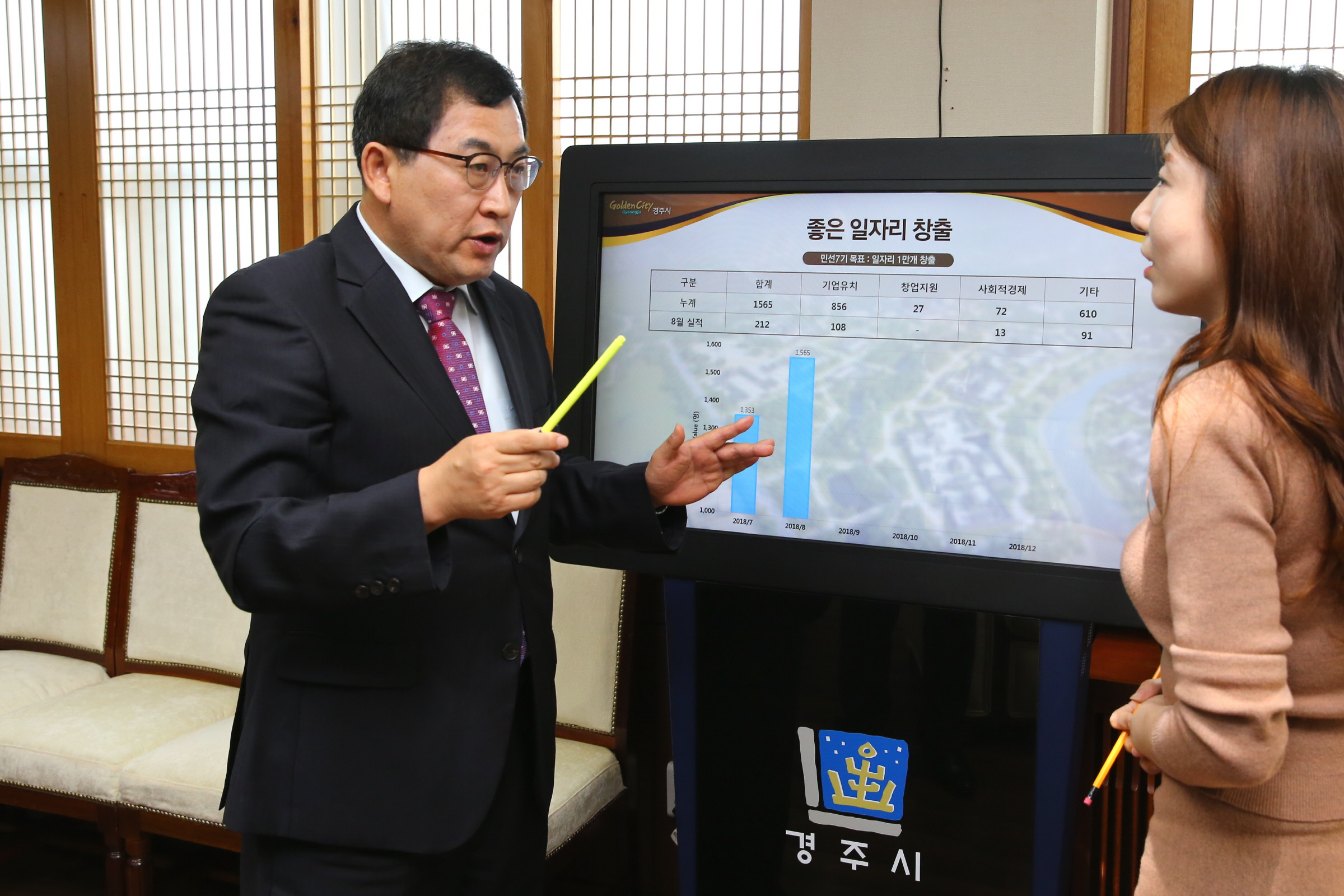주낙영 경주시장은 “일자리 상황판을 통해 일자리 추진 상황을 수시로 직접 점검하고 면밀히 챙기겠다”며 “정부의 정책 기조는 물론 지역특색에 맞는 일자리를 창출해 시민에게 실질적인 혜택이 돌아가도록 모든 행정력을 일자리 마련에 집중해 나가겠다”고 밝혔다.