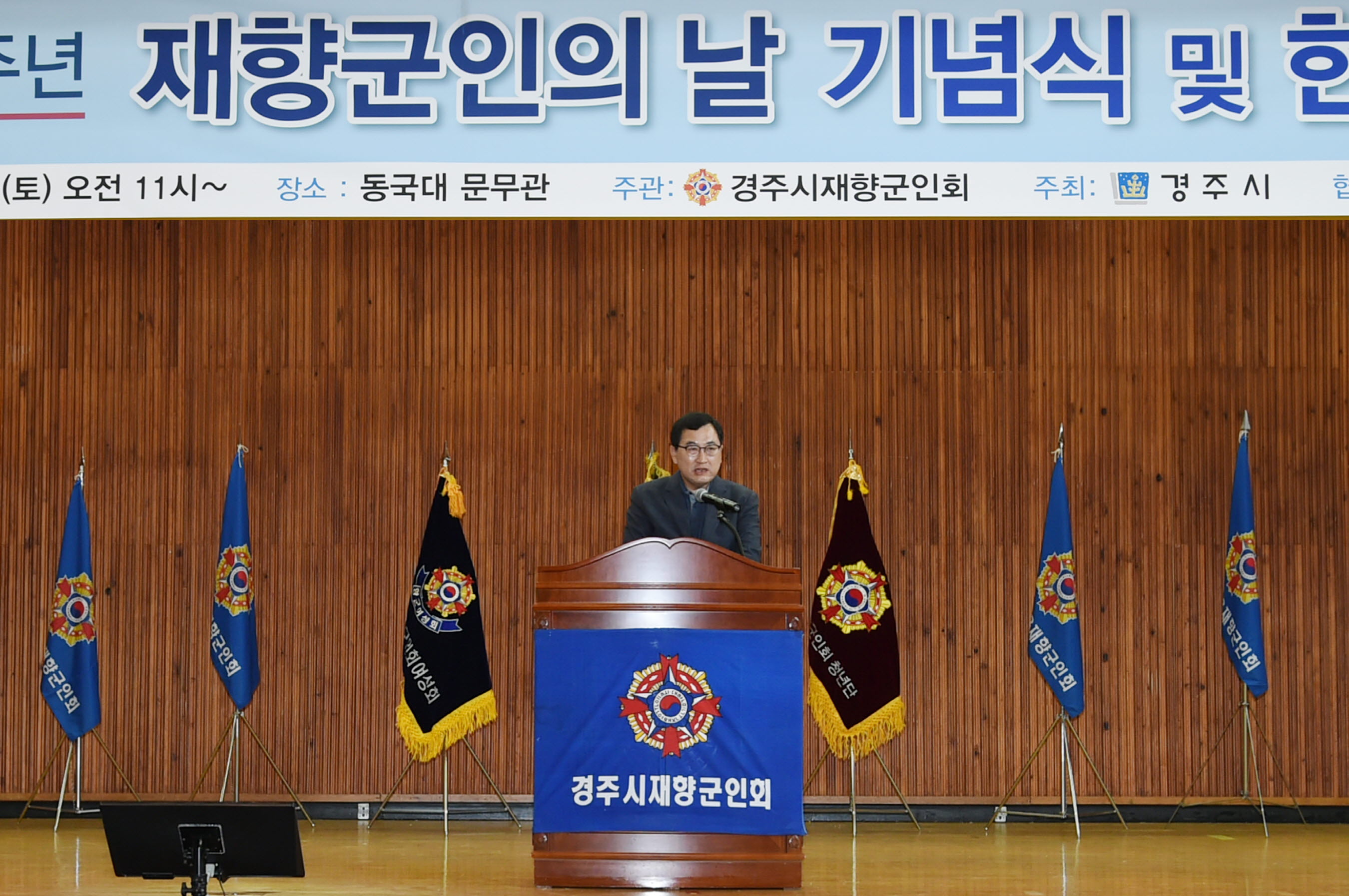 【경주=미디어인경북】김동철 기자 = 경주시는 13일 동국대학교 문무관에서 지역 안보의지를 다지고 재향군인회원 상호간의 결속을 다지는 ‘제66주년 재향군인의 날 기념식 및 한마음대회’를 열었다.