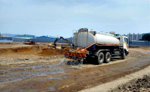 | ▲비산먼지 사업장 내 통행도로 살수조치 (사진=경주시) |