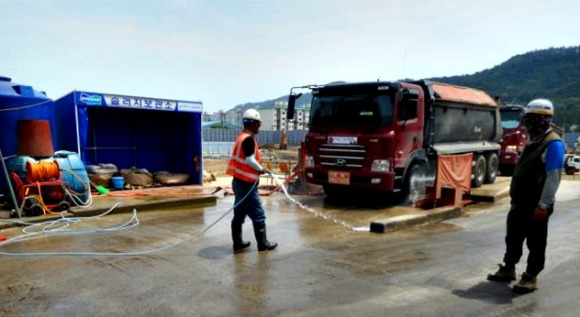 | ▲비산먼지 수송차량 세륜 (사진=경주시) |