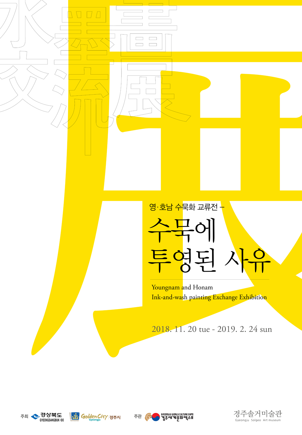 (재)문화엑스포는 경주솔거미술관 상설전시실에서 오는 20일부터 내년 2월 24일까지 ‘영호남 수묵화 교류전-수묵에 투영된 사유’를 개최한다고 밝혔다. 오프닝은 20일 오후 3시.