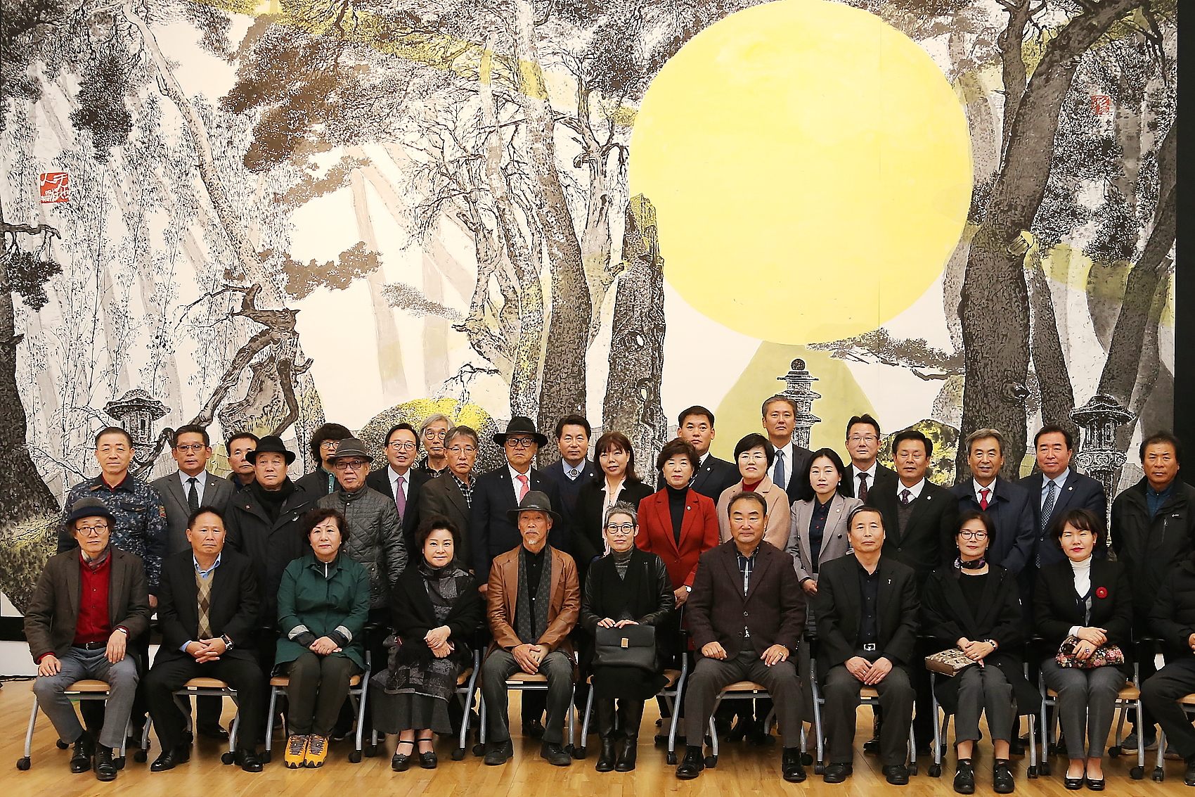 | ▲20일 솔거미술관에서 열린 영호남수묵화 교류전 오프닝에서 작가와 내빈 기념촬영 (사진=문화엑스포) |