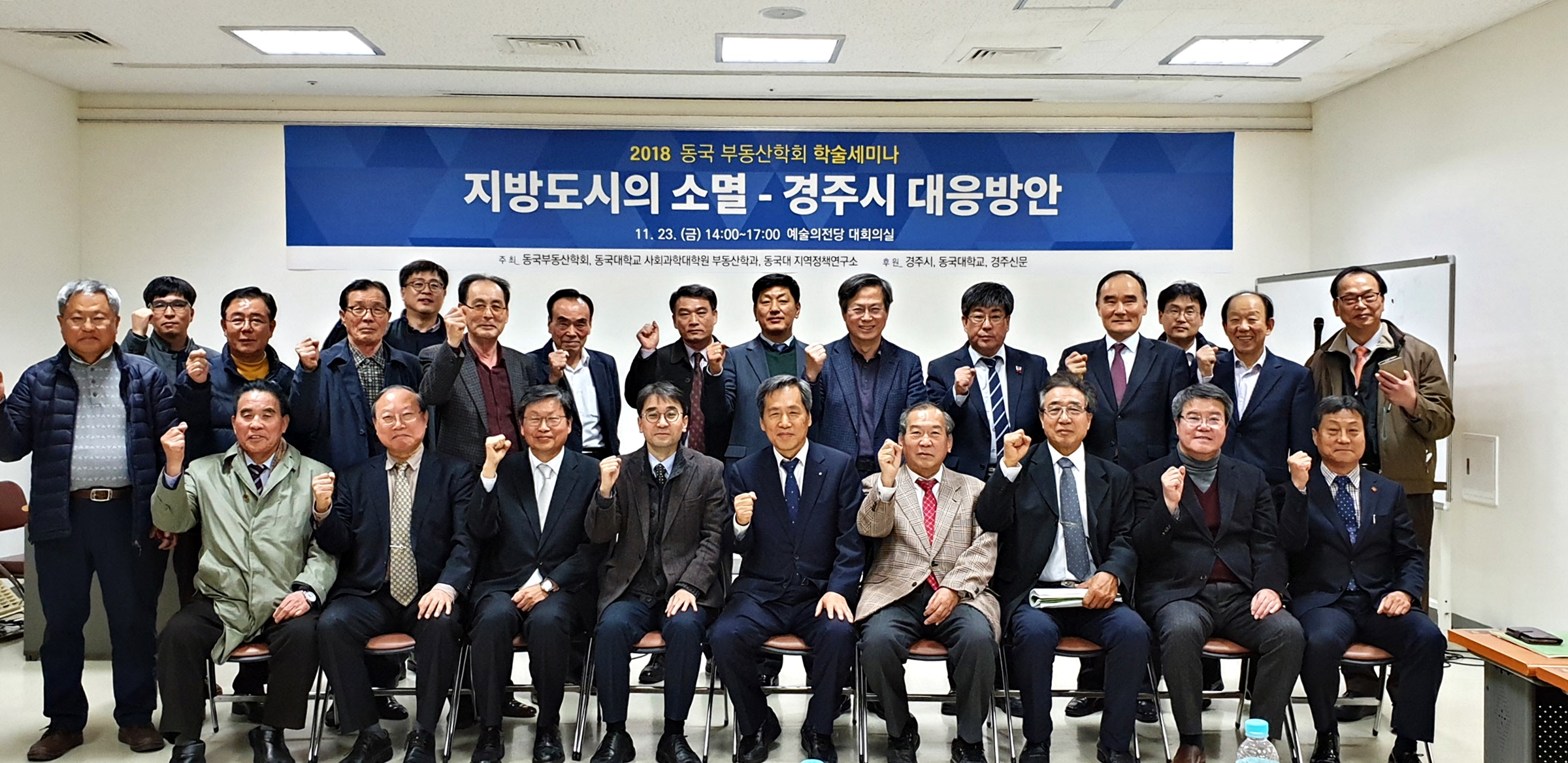 【경주=미디어인경북】김동철 기자 = 동국부동산학회를 비롯한 동국대학교 사회과학대학원 부동산학과, 동국대학교 지역정책연구소가 공동 주최한 ‘2018 동국부동산학회 추계학술대회’가 23일 관련분야 100여명이 참석한 가운데 경주예술의전당 대회의실에서 열렸다.
