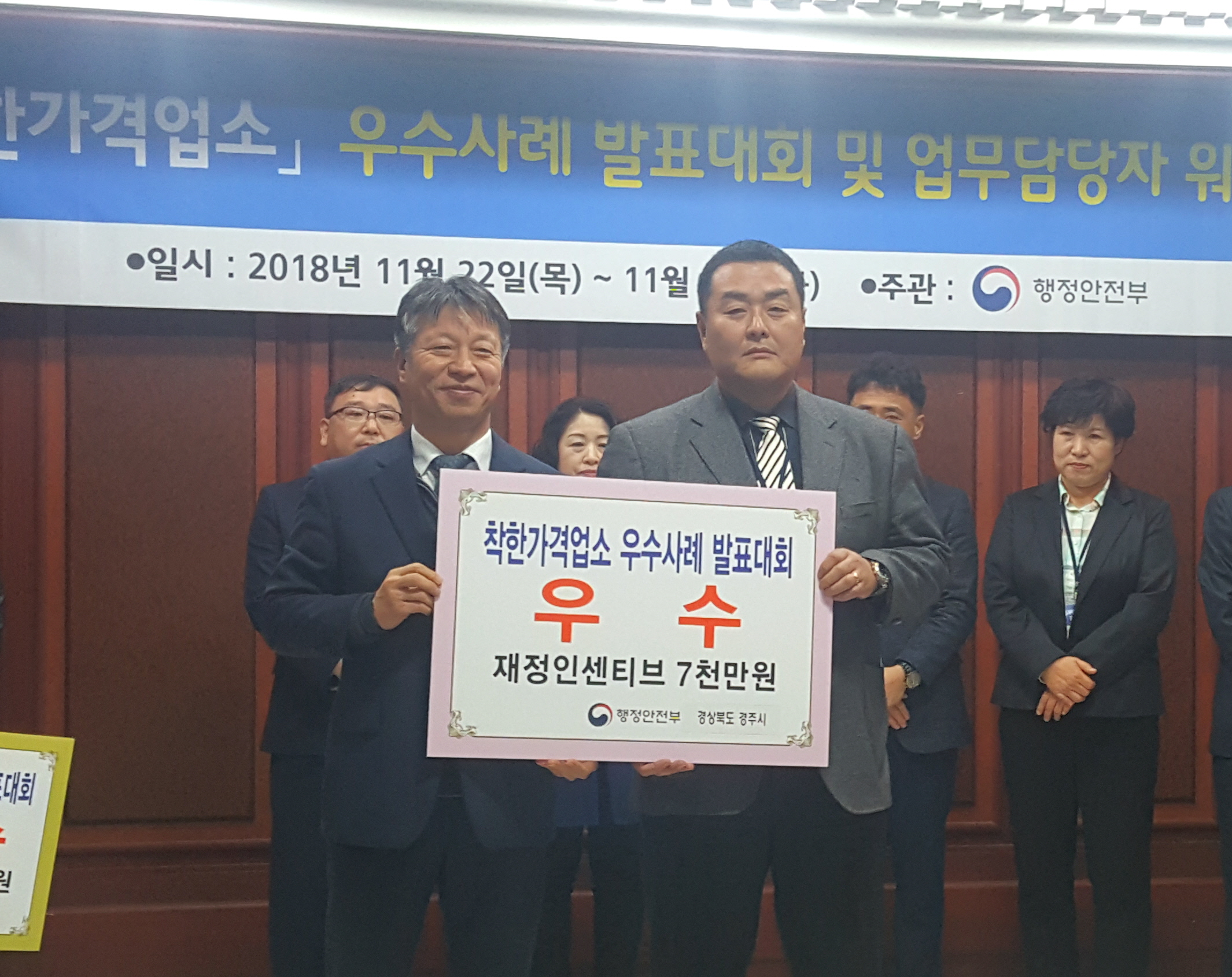 경주시는 착한가격업소의 친절과 청결 서비스 및 착한 나눔 실천운동, 쓰레기 봉투를 비롯한 필요 소모품 맞춤형 인센티브 지원 등을 우수사례로 발표해 심사위원에게 큰 호응을 얻었다.