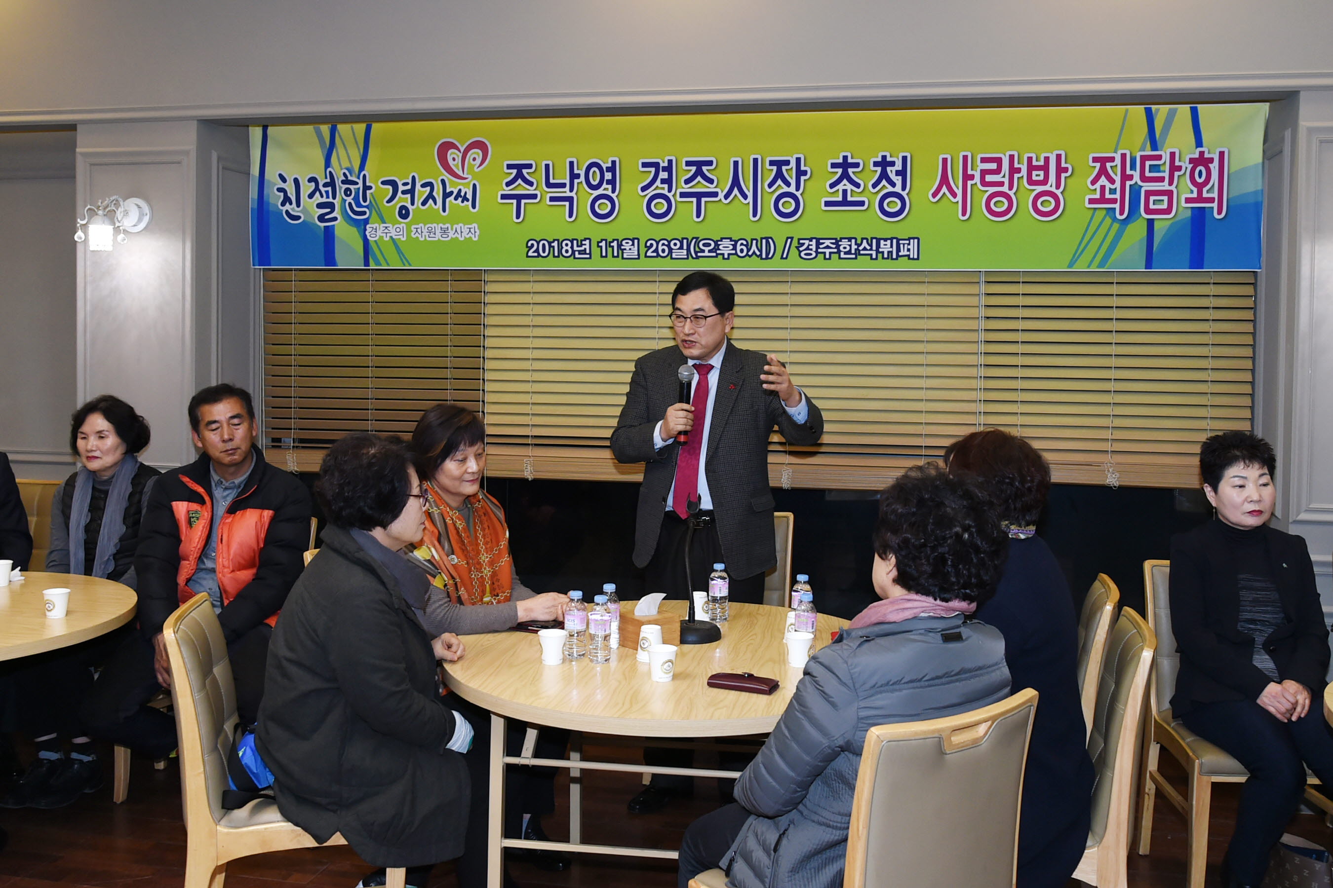 | ▲주낙영 경주시장이 26일 자원봉사자와 함께 두번째 사랑방좌담회를 갖고 있다. |