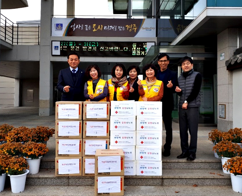 【경주=미디어인경북】 김동철 기자 = 대한적십자사 외동희망봉사회(회장 최순귀)에서는 28일 외동읍 지역의 생활이 어려운 가구 10세대를 방문해 라면과 김장김치 등 각 10박스를 전달했다.