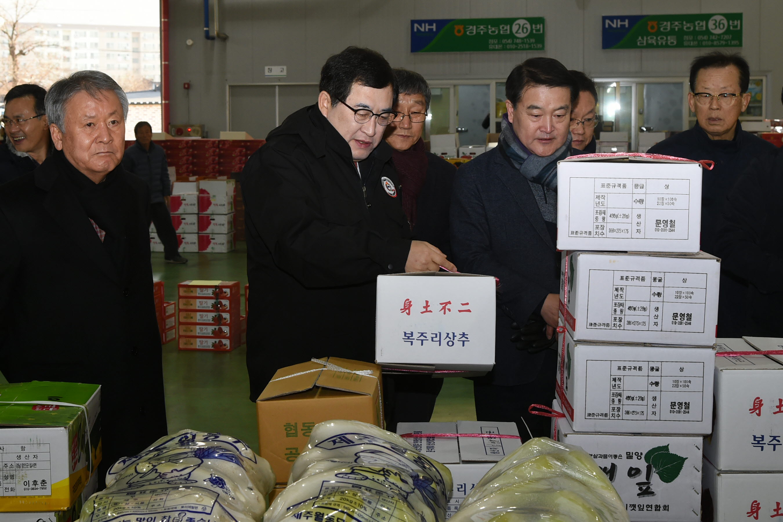 【경주=미디어인경북】 김동철 기자 = 주낙영 경주시장은 29일 설 대목을 앞두고 ‘서민의 3투어(찾는 삶, 보는 삶, 느끼는 삶)’ 일정으로 경주농협 농산물공판장 농산물 경매현장을 방문해 농산물 경매와 거래현황을 둘러봤다.