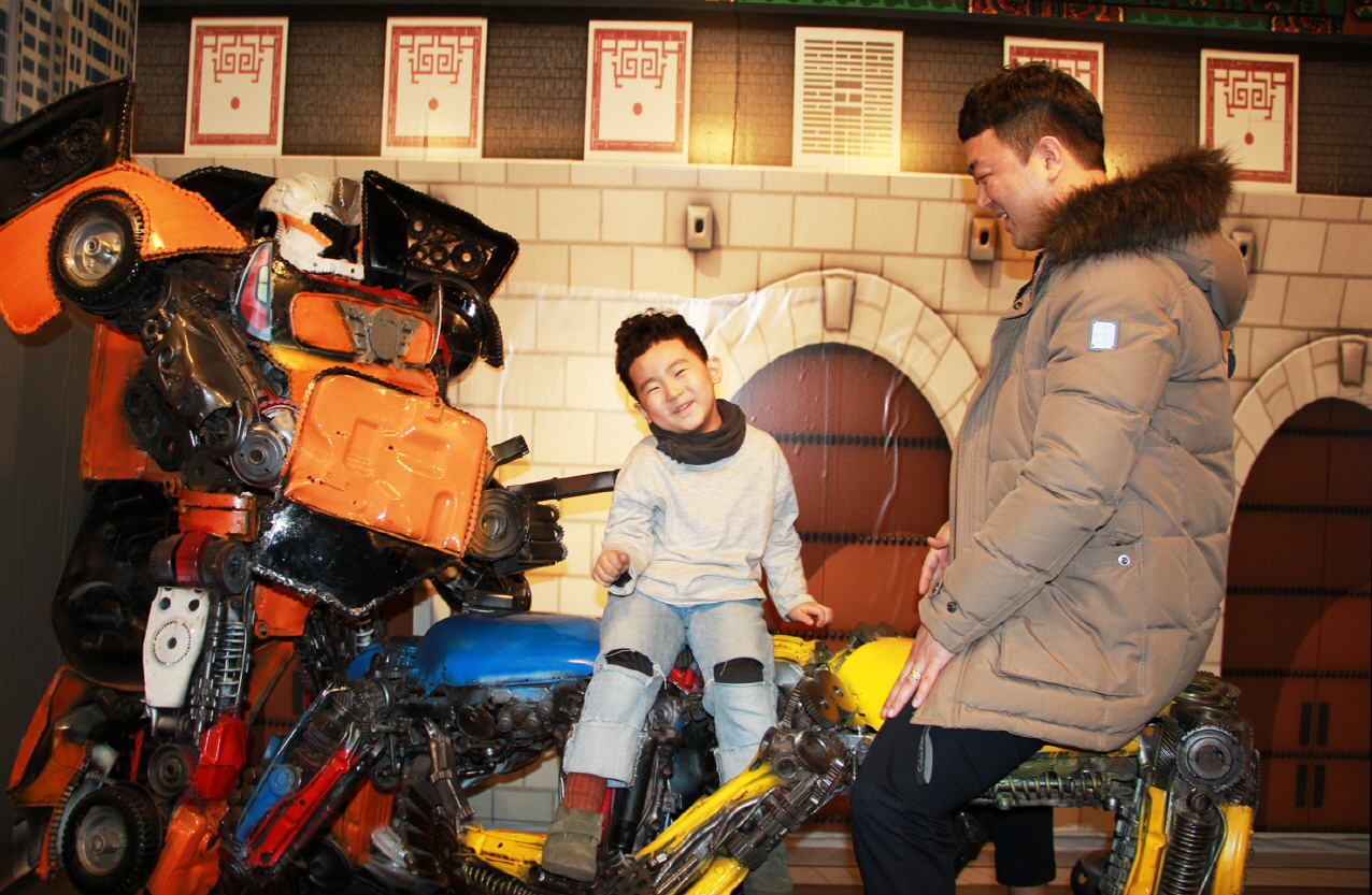 | ▲설연휴 마지막날인 6일 경주엑스포공원 또봇정크아트뮤지엄을 찾은 가족관람객이 즐거운 시간을 보내고 있다. |
