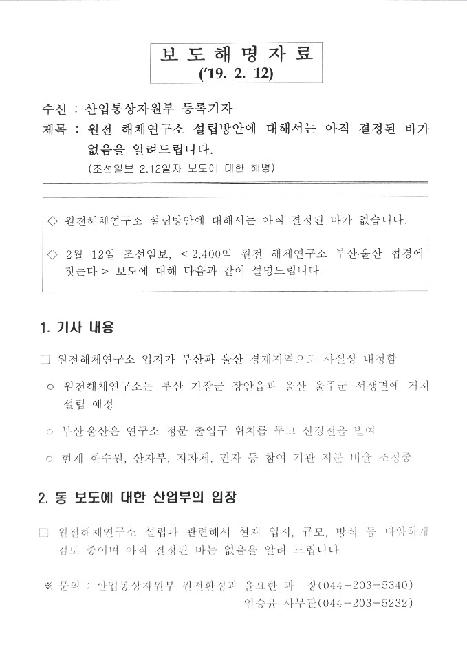 | ▲(원본)원전 해체연구소 설립방안에 대한 산업통상자원부 보도해명자료 |