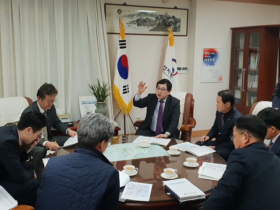 | ▲주낙영 경주시장이 부산지방국토관리청에서 국비지원 요청을 위한 사업설명을 하고 있다. |