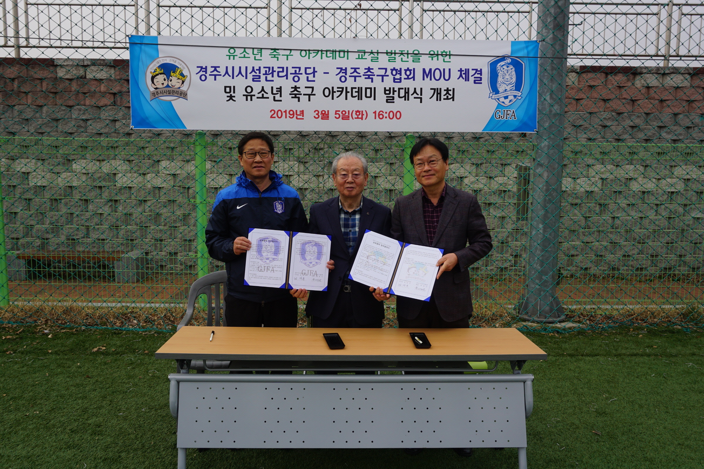 【경주=미디어인경북】 김동철 기자 = 경주시시설관리공단은 5일 경주축구공원 풋살구장에서 어린이들의 체력증진과 단체 활동을 통한 사회성 발달을 위해 ‘유소년 축구아카데미 교실’을 개설하고, 축구교실의 원활한 운영과 경주지역 축구발전을 위해 경주시축구협회(회장 윤영선)와 업무협약(MOU)을 체결했다고 밝혔다.
