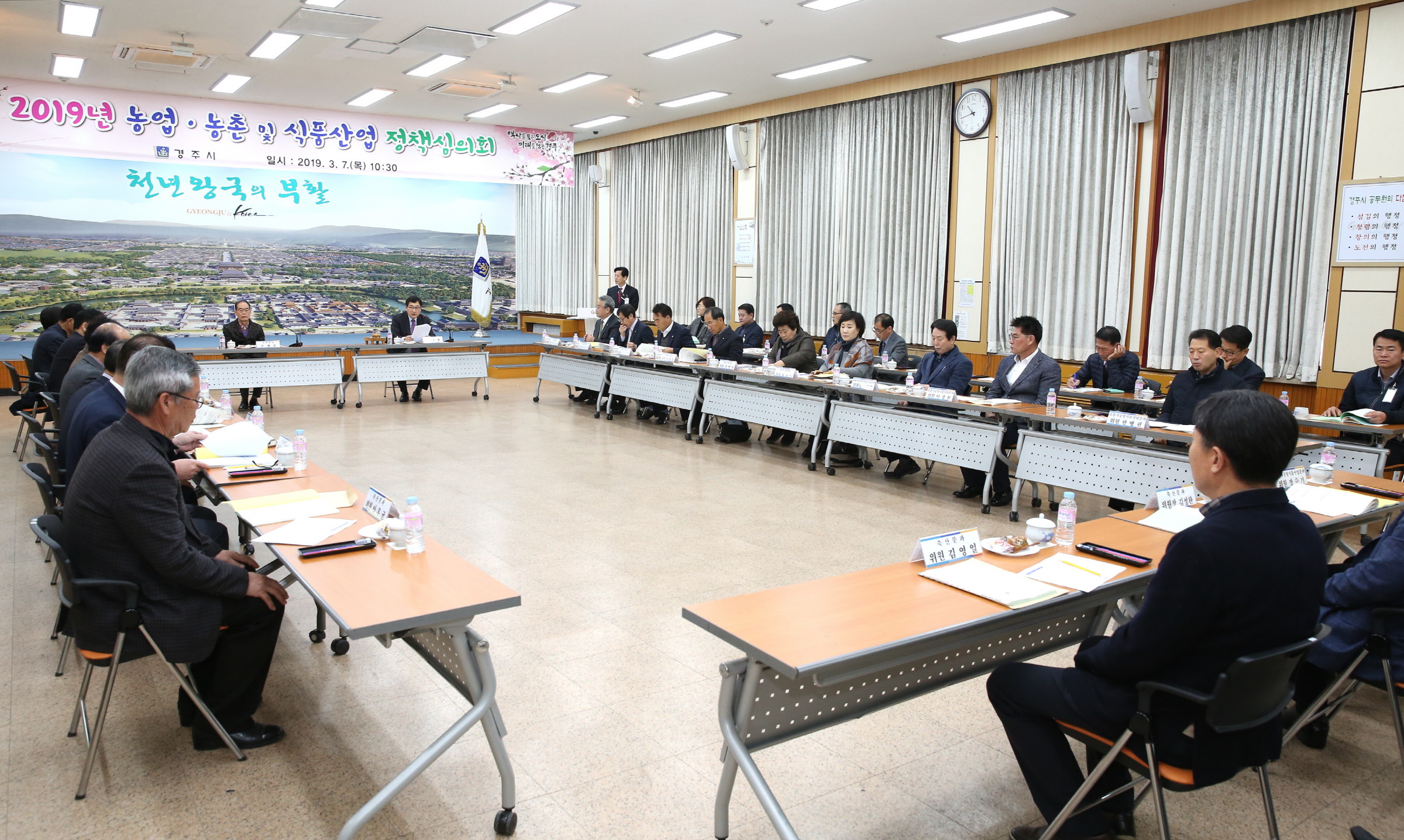 시는 7일 대회의실에서 주낙영 경주시장을 비롯해 농업분야 기관단체장과 각 분야별 전문가로 구성된 심의위원 26명이 참석한 가운데 ‘ 농업·농촌 및 식품산업 정책심의회’를 열었다.