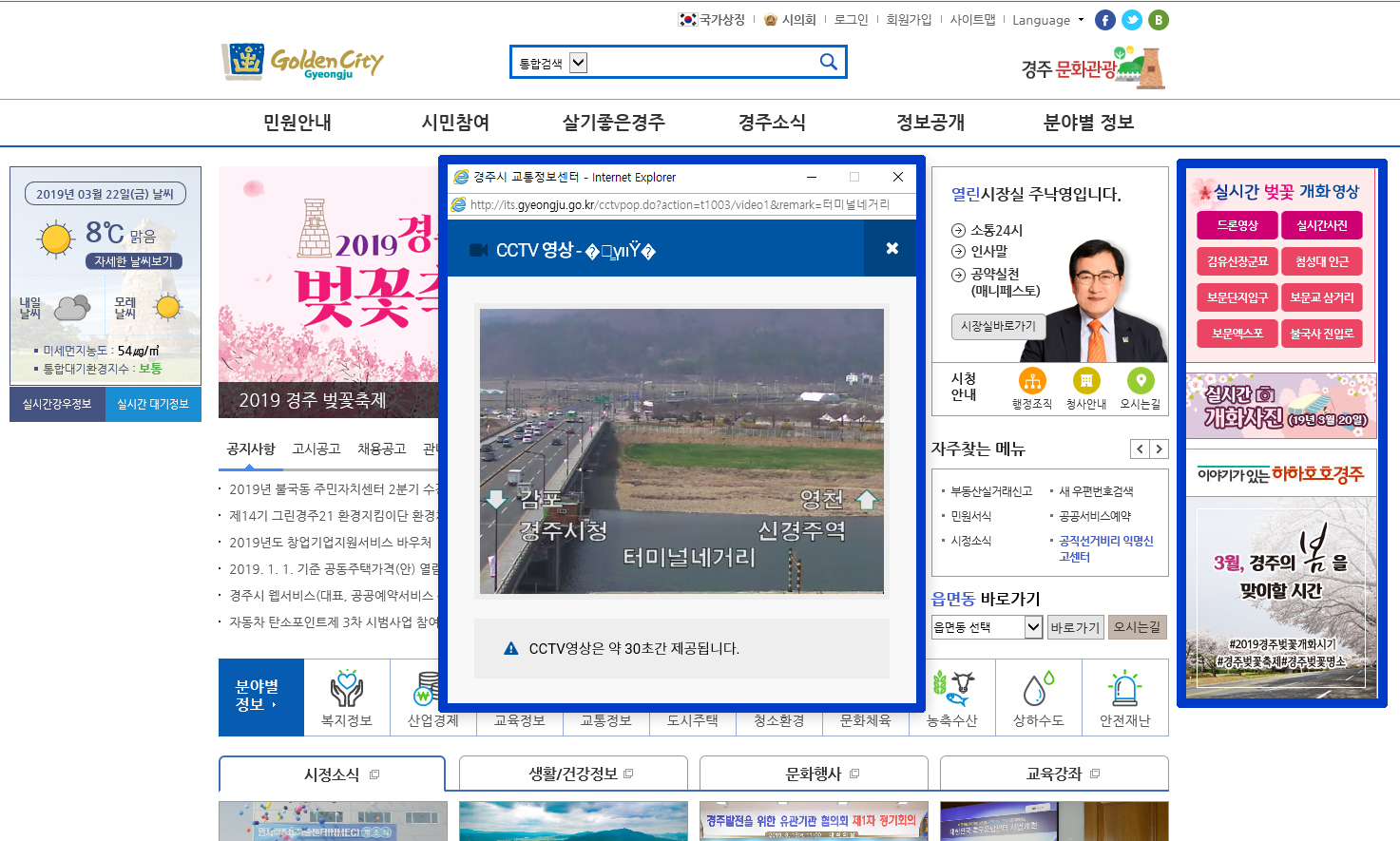 | ▲경주시 벚꽃 개화 실시간 정보 홈페이지 안내 |