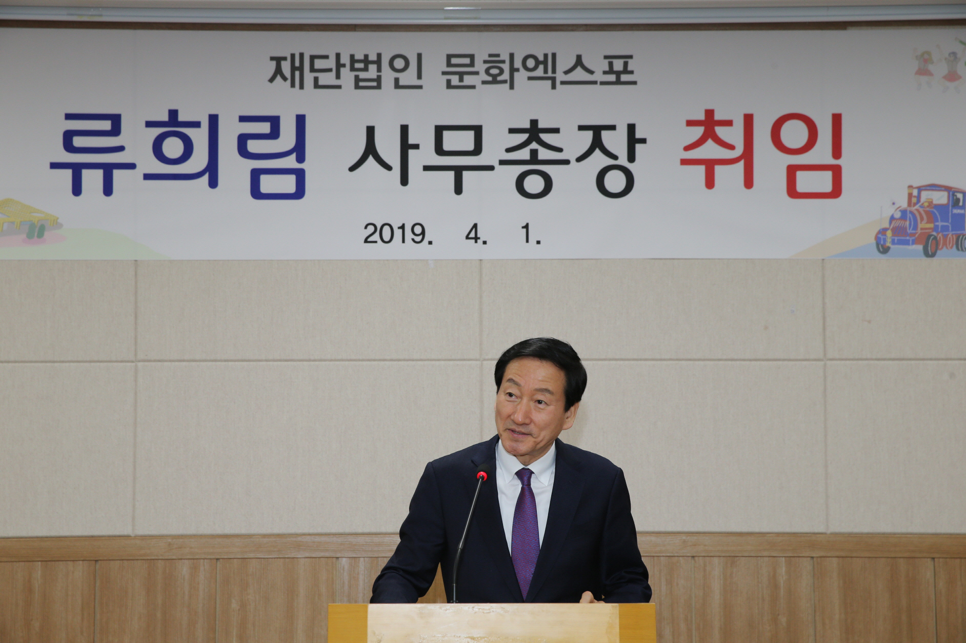 | ▲(재)문화엑스포 류희림 신임 사무총장이 취임식에서 인사말을 하고 있다. |