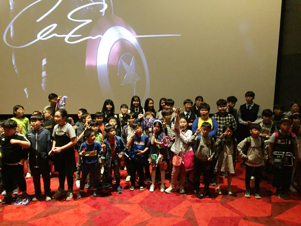 감포, 나아, 양남, 양북 4개 아동센터 학생 150여명과 인솔교사들은 준비된 햄버거와 음료수를 먹고 사전 설문조사로 결정된 영화 “어벤져스”와 “나의 특별한 형제”를 관람하였다.