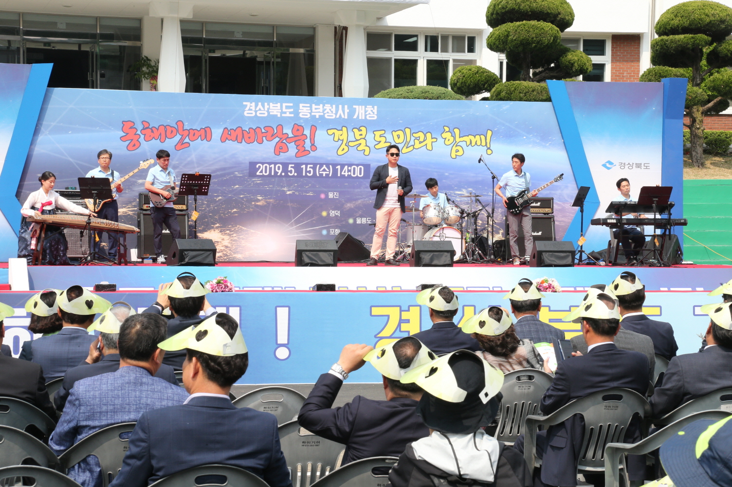 | ▲경주엑스포 직원들이 경북도 동부청사 개청식 축하무대에서 공무원밴드와 협연해 박수갈채를 받았다. |