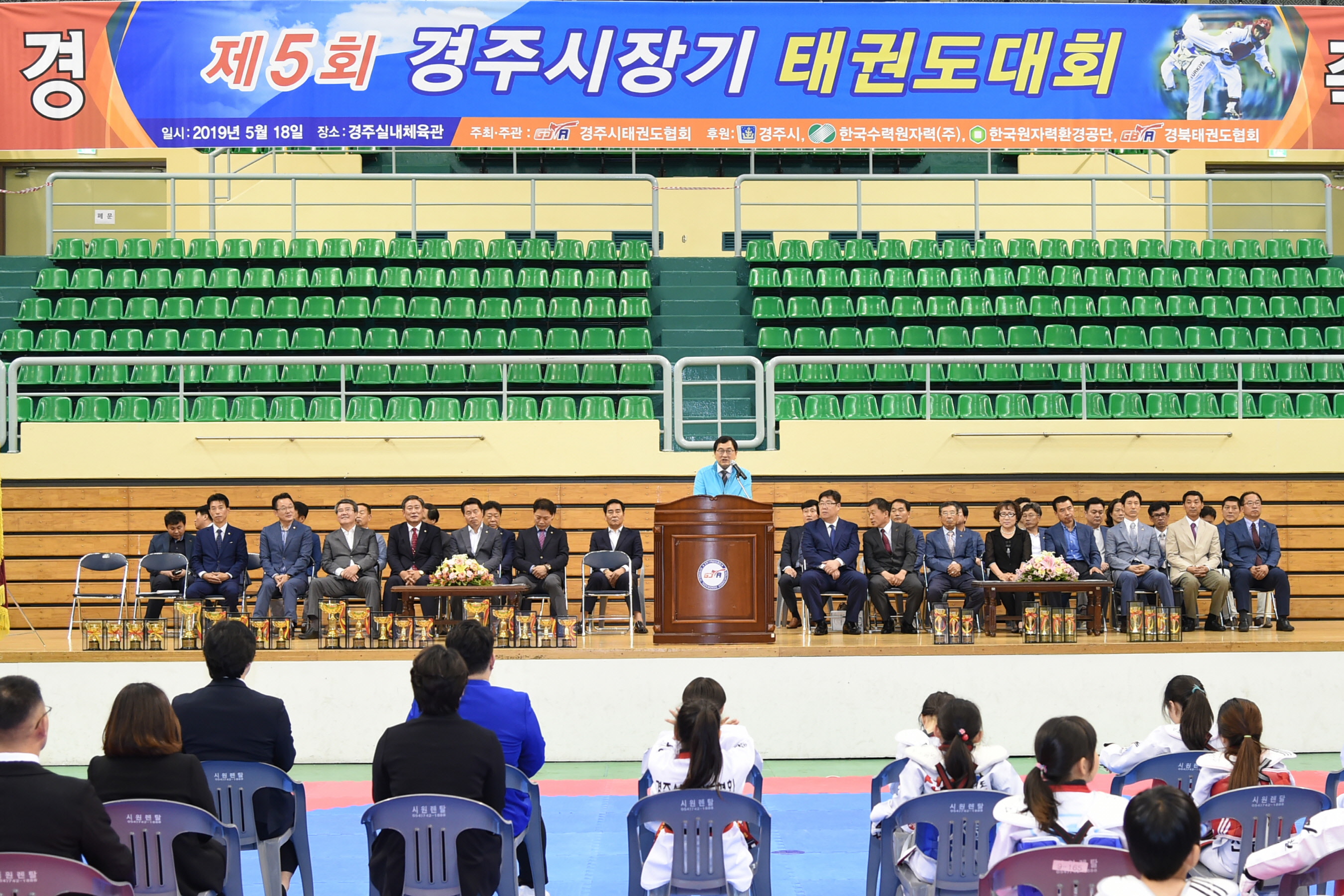 【경주=미디어인경북】 김동철 기자 = 경주시에서는 지난 18일 경주실내체육관에서 주낙영 경주시장, 윤병길 시의장을 비롯해 도․시의원, 기관단체장들과 시민들이 참석한 가운데 ‘제5회 경주시장기 태권도대회’가 성황리에 개최됐다.