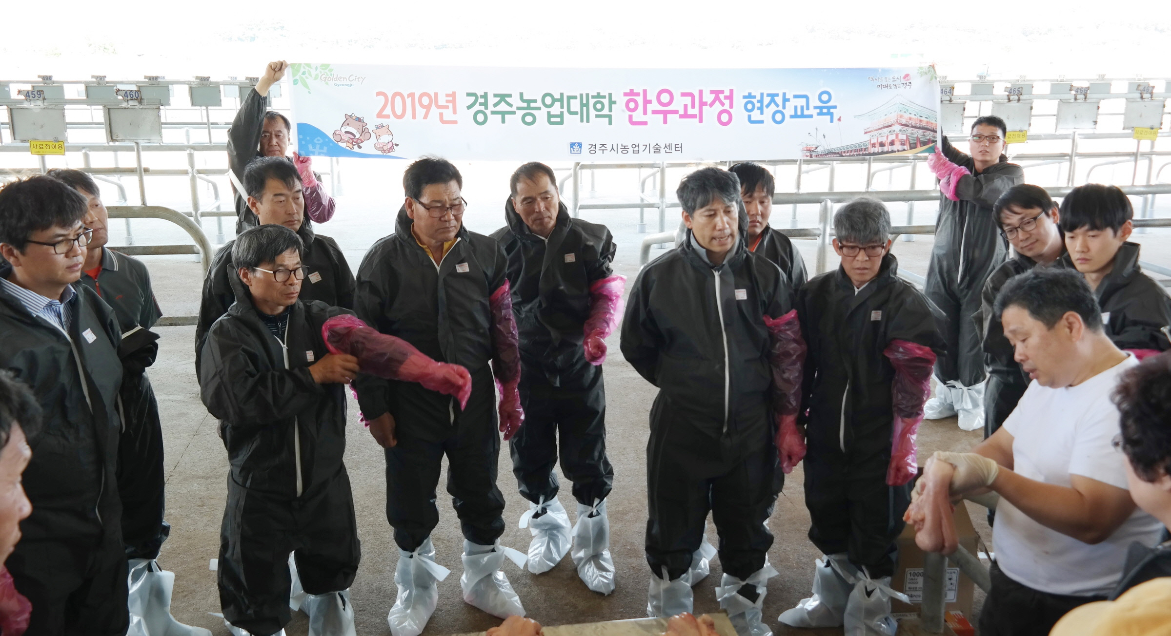 【경주=미디어인경북】 김동철 기자 = 경주시농업기술센터는 21일 축협 가축시장에서 농업대학 한우과정 교육생 45명을 대상으로 인공수정 이론 및 실습교육을 실시했다.