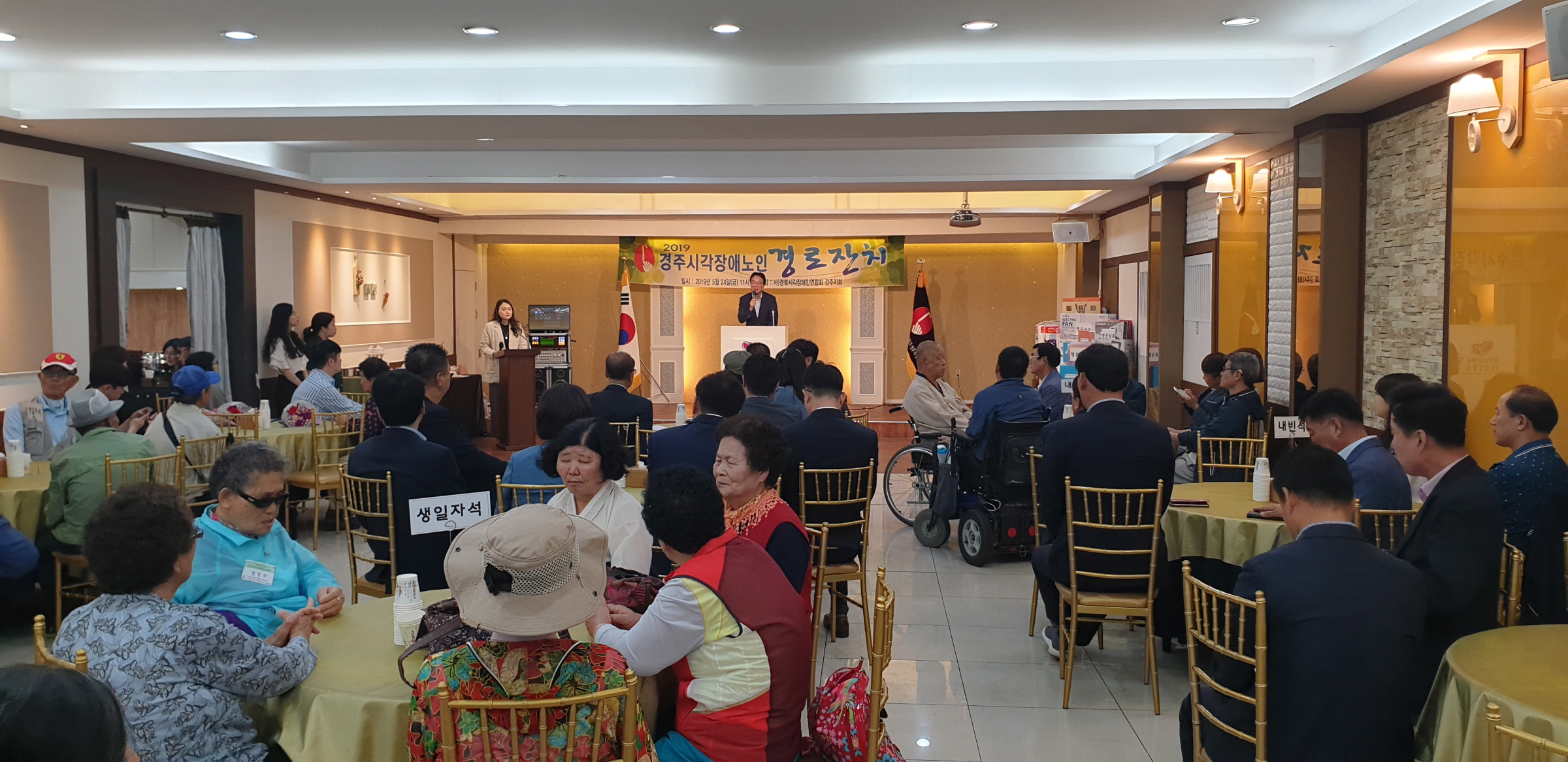 【경주=미디어인경북】 김동철 기자 = (사)경북시각장애인연합회 경주시지회(지회장 김헌덕)는 가정의 달을 맞아 지난 24일 웨딩파티엘에서 시각장애인 경로잔치 행사를 가졌다.