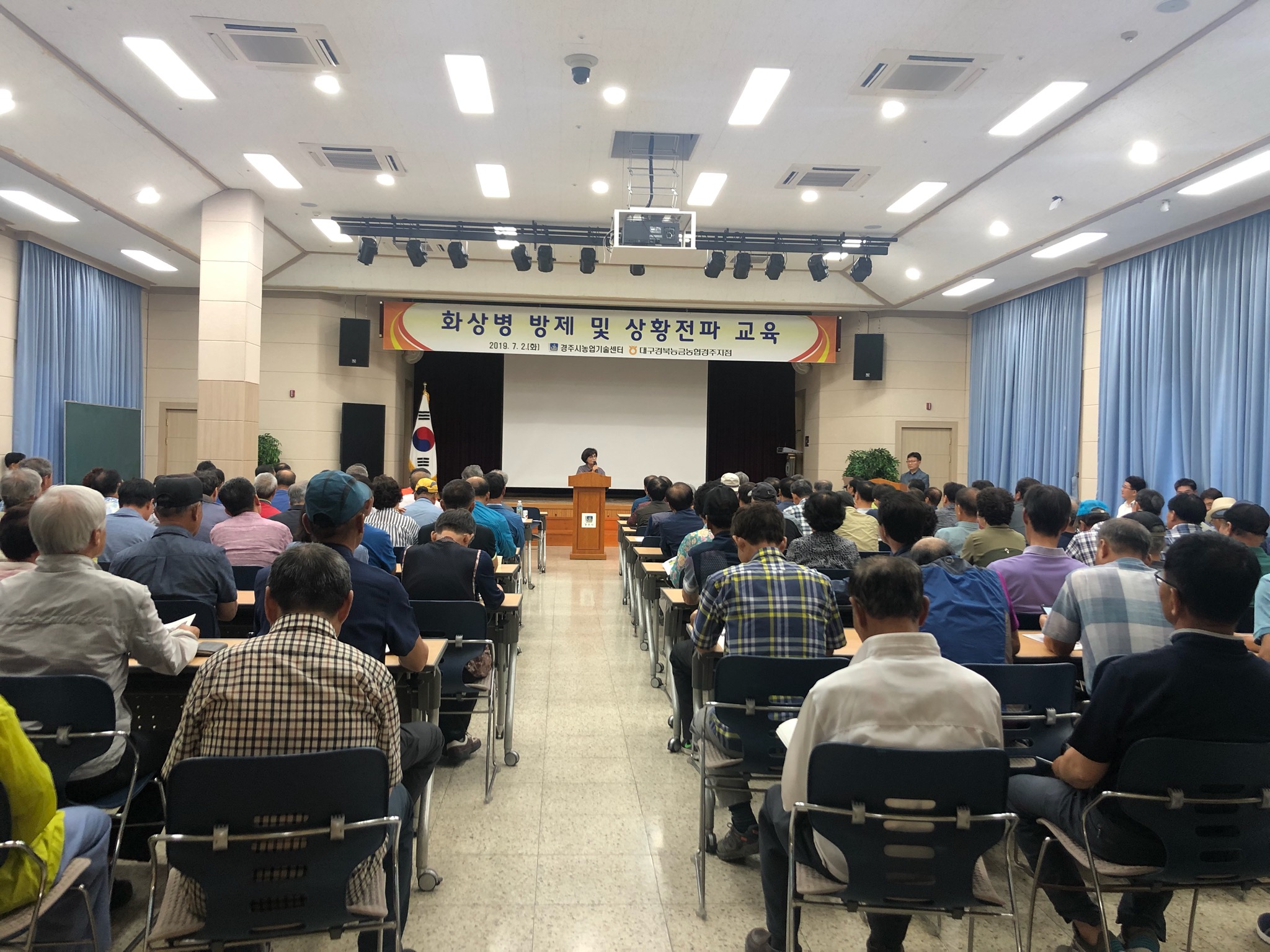 또한 농업기술센터 경제작물팀과 각 읍・면・동 상담소장과 선도농가는 함께 과수원에 대해 육안조사를 하고 우리지역에 화상병이 감염되지 않도록 최선의 노력을 다하고 있으며, 이달 2일에는 농가 150여 명을 대상으로 화상병 방제 경험이 있는 원주시농업기술센터에서 전문 강사를 초빙해 방제방법 및 상황전파를 주제로 사과・배 재배 특별교육을 실시했다.