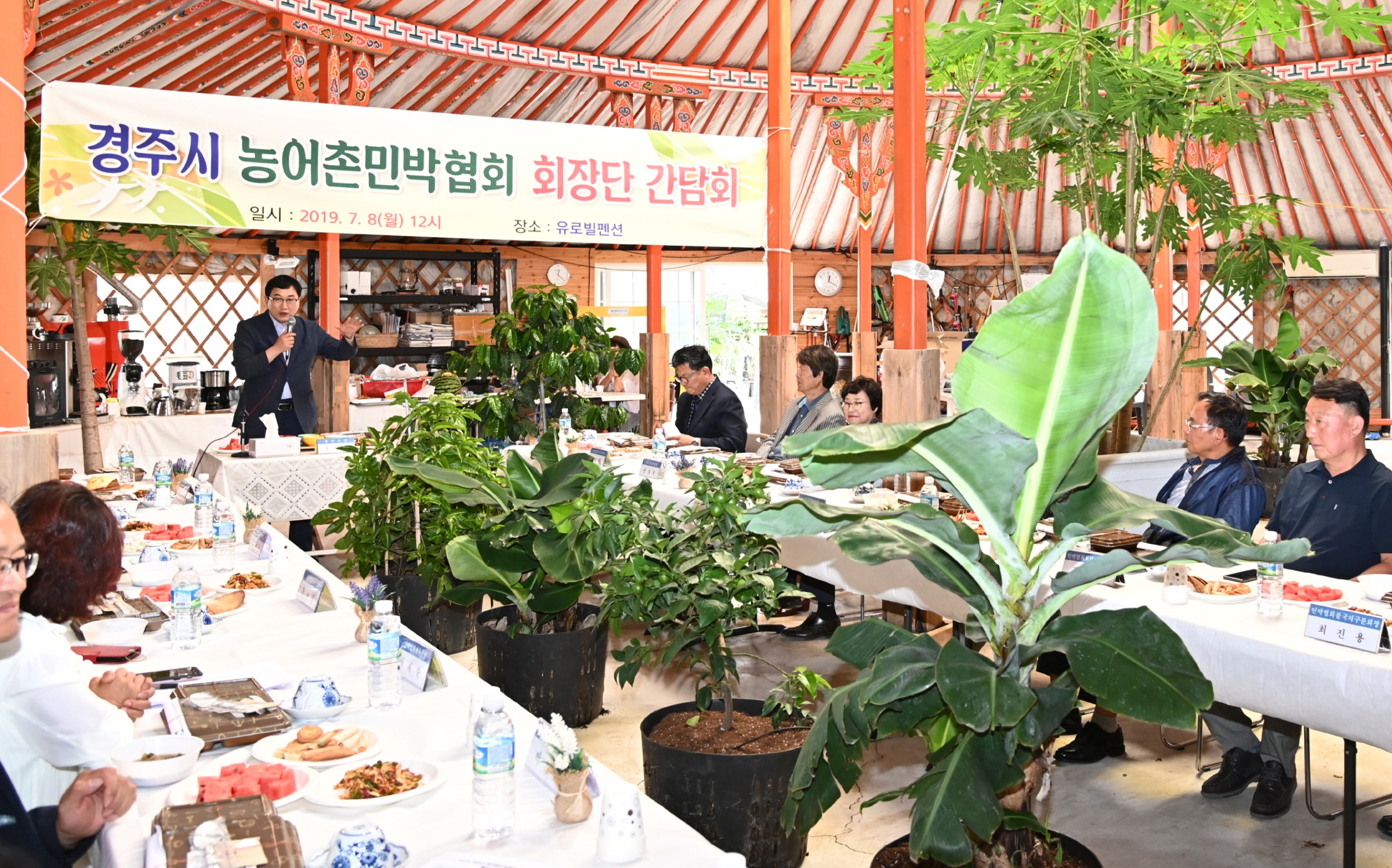 이 날 간담회에는 주낙영 경주시장를 비롯한 시청 간부공무원과 경주시 민박협회장 및 임원 20여명이 참석한 가운데, 경주지역에 적합한 농어촌민박 활성화 방안을 모색하기 위해 민박사업자의 애로사항 등을 청취했다.