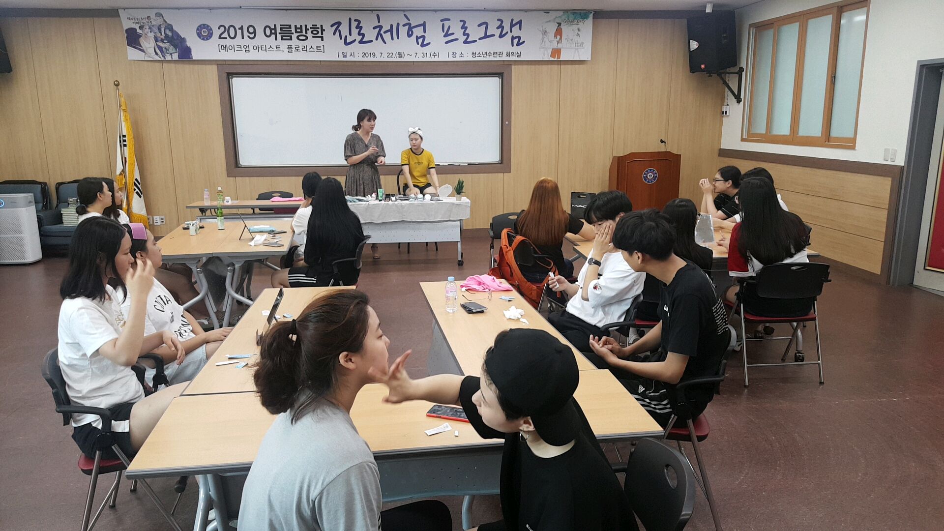메이크업아티스트 체험에 참여한 김민주(중3) 청소년은 “평소 메이크업에 관심이 많았는데 피부 관리의 기본 원리를 알게 되어 좋았고, 메이크업아티스트는 미적 감각과 다른 사람을 배려하는 마음도 있어야 한다는 것을 배우게 되었다”고 말했다.