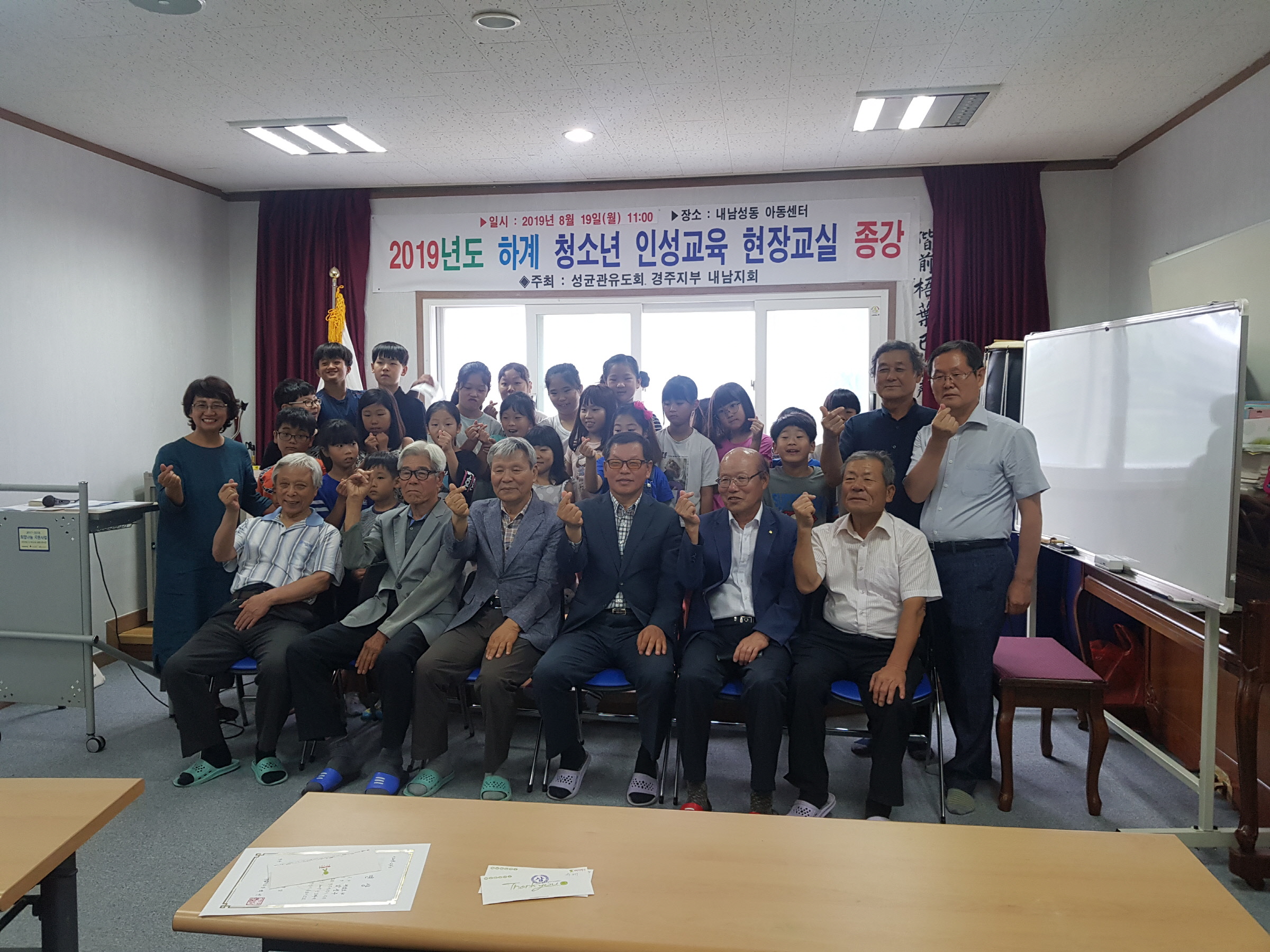 【경주=미디어인경북】 김동철 기자 = 지난 19일, 내남면 성동지역아동센터에서 성균관유도회 경주시지부 내남면지회(지회장 박인택)가 운영해 온 ‘하계 청소년 인성교육 현장교실’ 수료식이 열렸다.