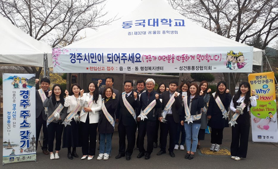 지역 거주자의 경주 주소 갖기 자율 실천운동으로 경주시 공직자⇒대학생⇒유관기관‧단체, 기업으로 이어지는 단계별 대응 체계를 구축해 연내 전입인구 1,000명을 확보할 계획이다.