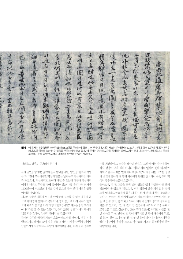 | ▲경주국채보상운동 학술대회·전시 개최(경주군 금연회사 취지서) |
