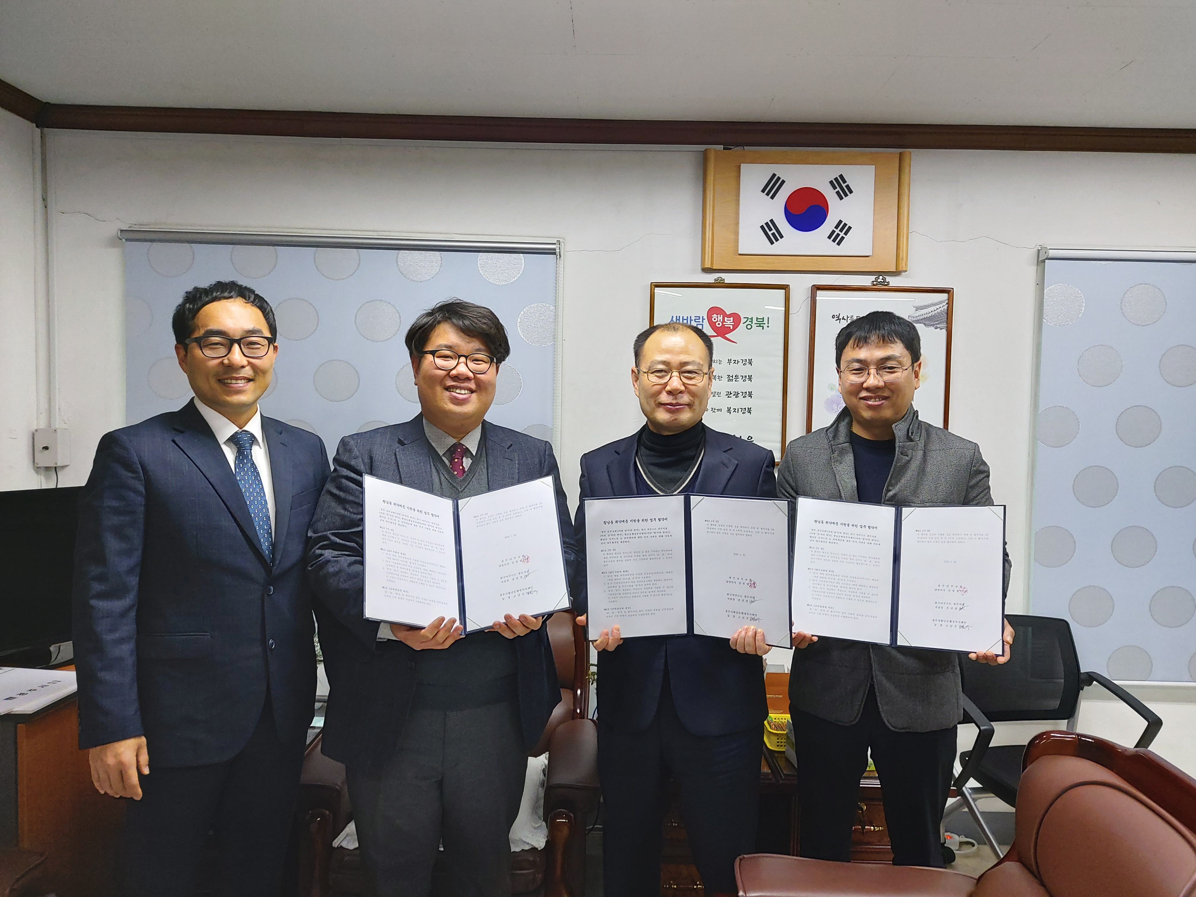 【경주=미디어인경북】 김동철 기자 = 경주시 황남동행정복지센터(동장 고남우)는 지난 30일 독거노인 등 홀로 지내는 취약계층을 위한 ‘건강음료 배달사업’을 추진하고자, 경주 남부교회(담임목사 김상정) 및 한국야쿠르트 경주지점(지점장 권신겸)과 ‘황남동 취약계층 지원을 위한 업무협약’을 체결했다.