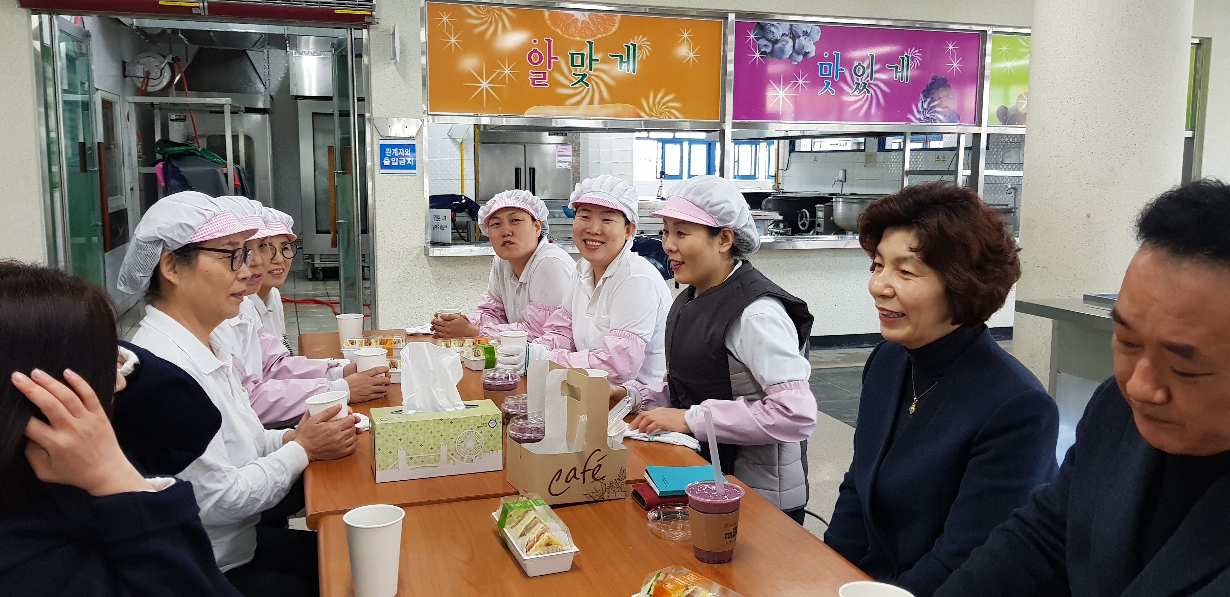 이날 점검에 나선 평생교육건강과장은 학교급식 종사자들에게 “신학기 개학을 앞두고 학교급식 준비과정과 위생관리에 조금이라도 소홀하면 식중독 발생이 우려되니 시설․설비의 안전관리, 개인위생, 식재료 선정 및 검수, 조리과정, 배식 등 급식전반에 걸쳐 위생과 안전관리가 철저히 이루어지도록 노력해 달라”고 당부함과 동시에 학교급식 조리종사자들을 위한 간식을 준비하여 급식 종사자들과의 소통을 위한 자리도 마련하였다.