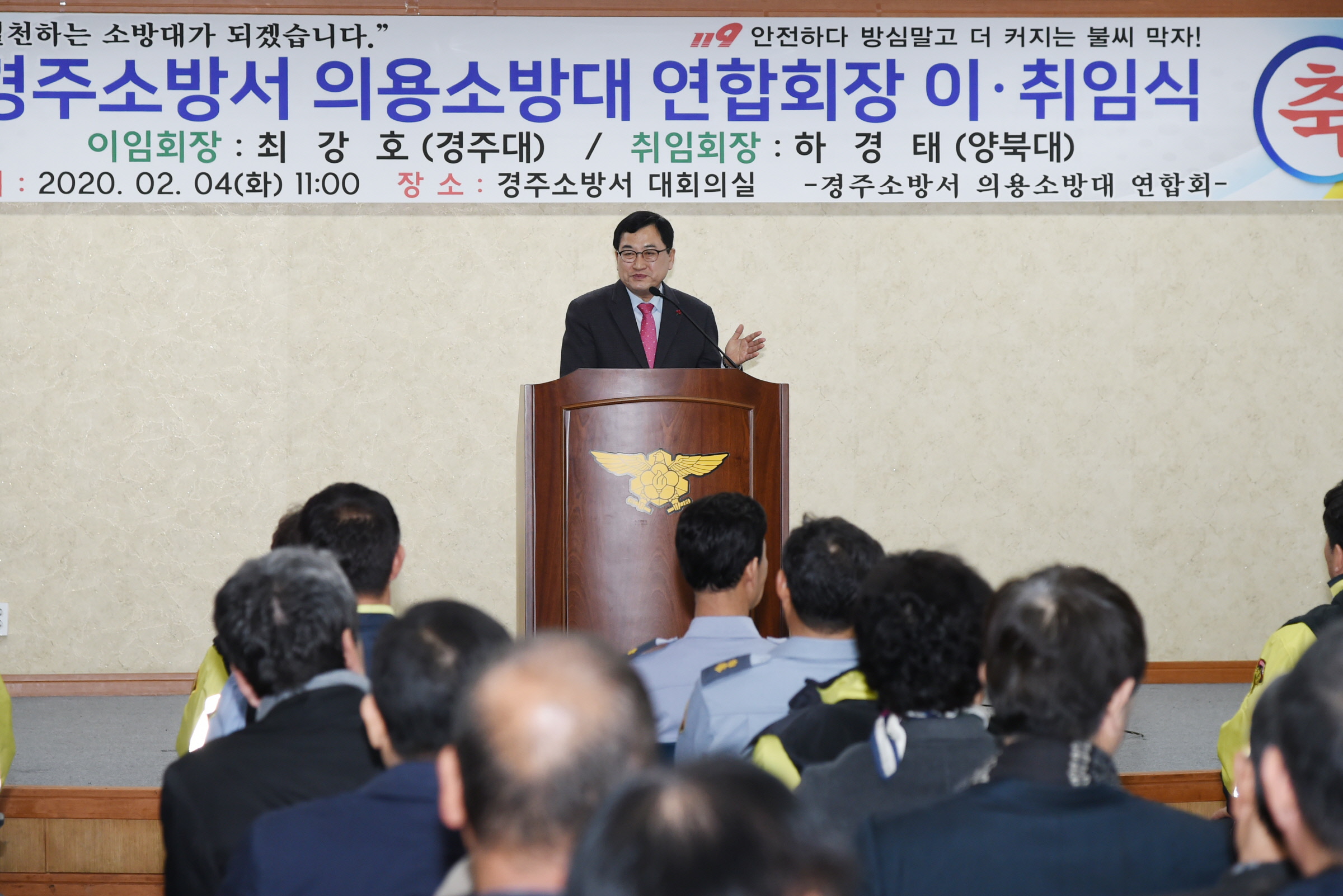 주낙영 경주시장은 이날 이·취임하는 연합회장을 축하하며, “경주시의용소방대연합회가 태풍과 호우, 폭염 등 자연재난시에도 희생과 봉사정신으로 구조·복구 활동에 힘써 주심에 감사하며, 앞으로도 적극적인 화재예방 순찰활동에 매진해 주시고 시가 추진하는 각종 안전정책도 함께 하길 바란다”고 말했다.