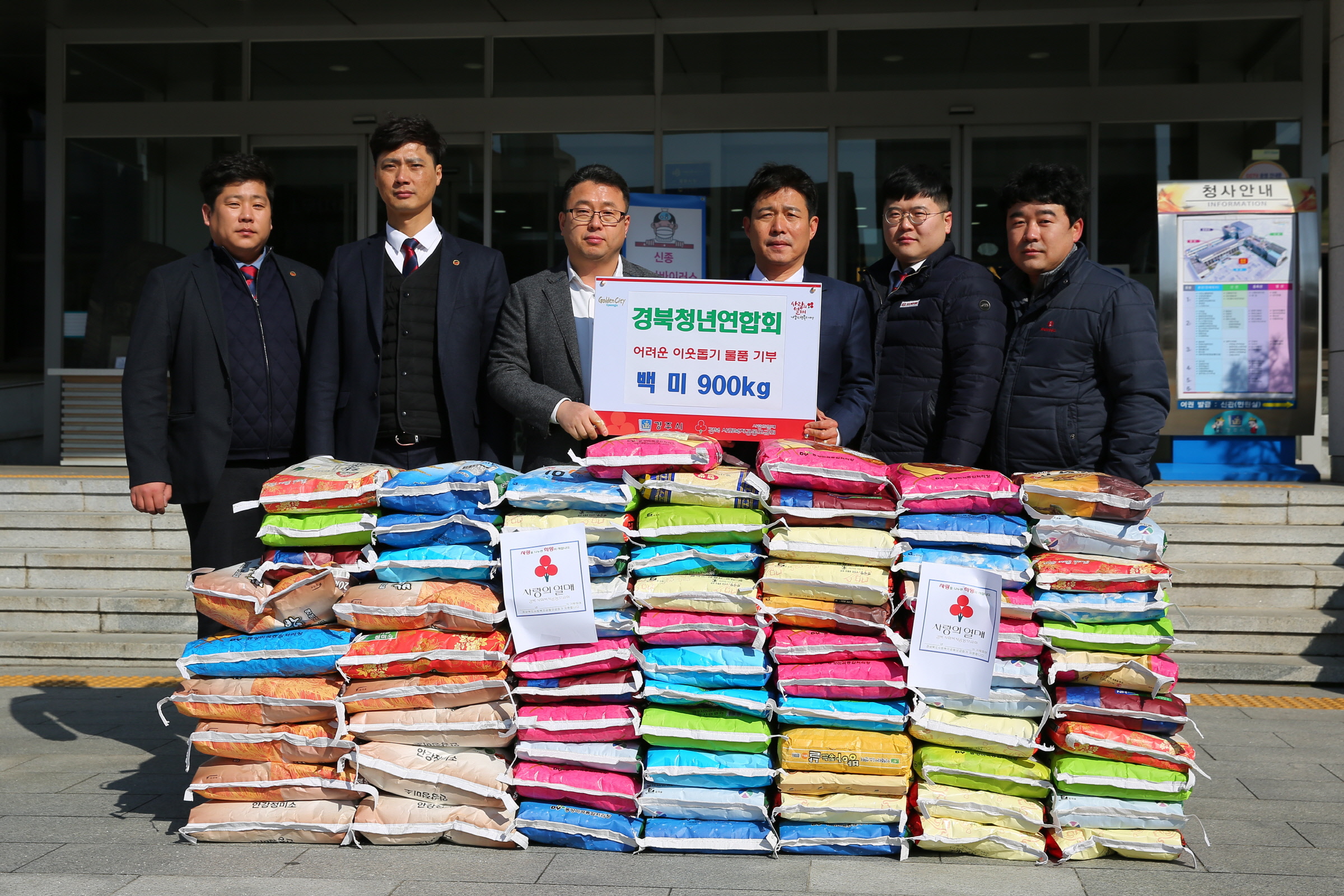 【경주=미디어인경북】 김동철 기자 = 경북청년연합회(회장 최영기)는 18일 경주시청을 방문해 어려운 이웃들을 위해 백미 900㎏을 기부했다.