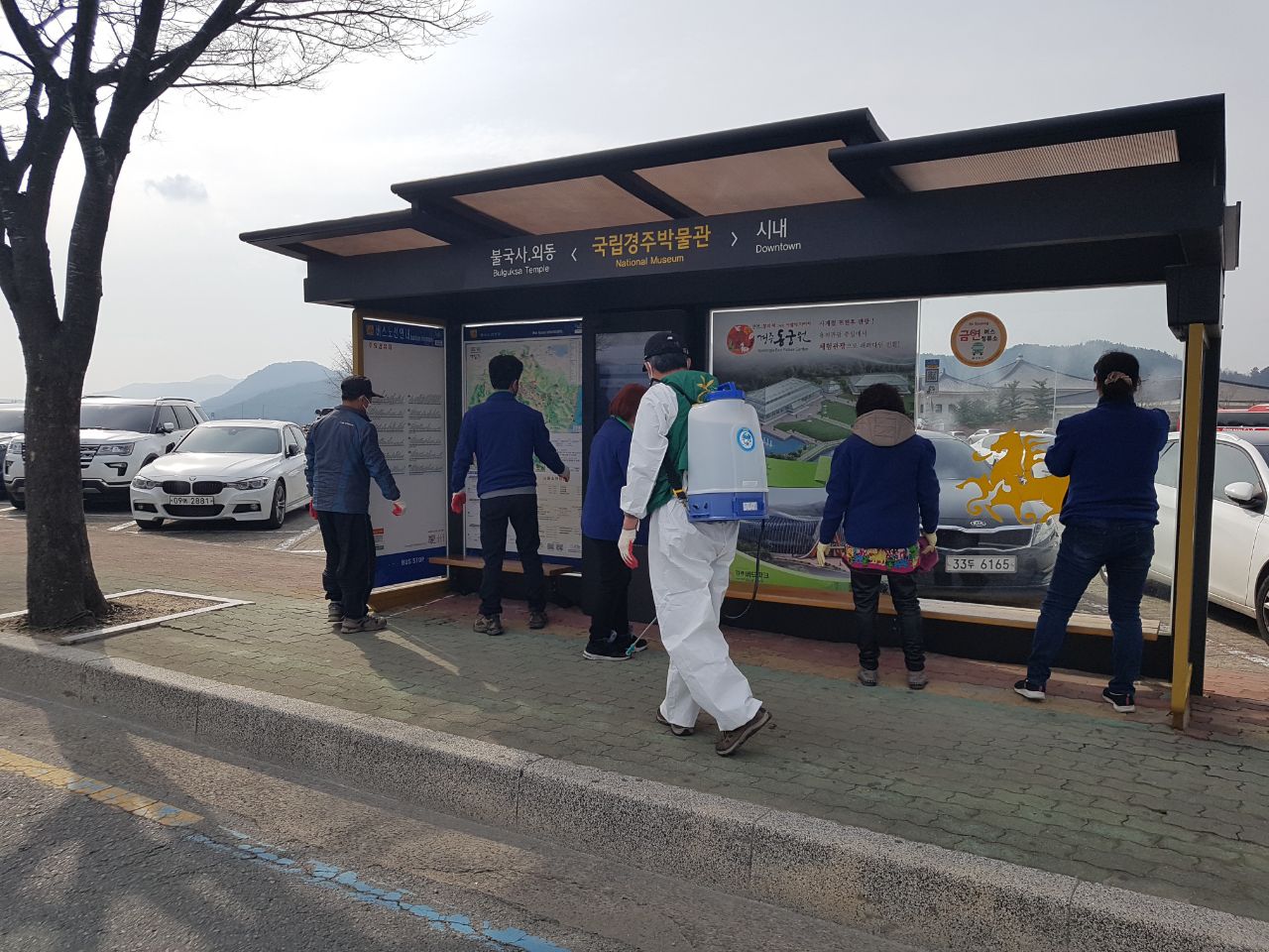 다중이용시설인 버스정류장 및 주요관광지 일대, 행정복지센터 등 공공기관을 등지를 중심으로 분무식 방역기를 이용해 소독을 실시했고, 특히 사람의 손이 닿는 손잡이, 배수구, 신발장 등을 약품으로 닦는 등 소독작업을 벌였다.