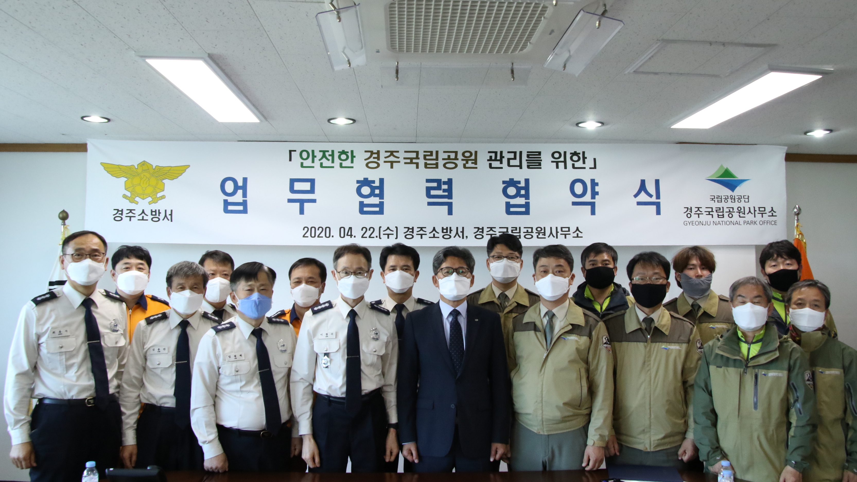 문명근 경주국립공원사무소장은 “119경주소방서와의 업무협약을 통해 공원 내 자연문화자원 보호와 안전한 탐방편의서비스를 제공하는 등 신라 천년의 문화유적을 간직한 경주국립공원을 보다 안전하게 잘 관리하도록 노력하겠다.”고 밝혔으며, 119경주소방서 이창수 서장 또한 “경주국립공원사무소와의 협력으로 경주국립공원에서 산불예방 및 재난대응 역량을 강화하는 등 국민의 안전을 책임지는 사회적 책무 강화를 위해 노력하겠다.”고 하였다.