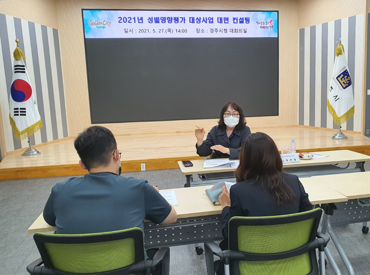 【경주=미디어인경북】 김동철 기자 = 경주시는 지난 27일 경주시청 대회의실에서 ‘2021년 성별영향평가 대상사업’의 각 사업별 담당자들을 대상으로 ‘대면 컨설팅’을 실시했다고 밝혔다.