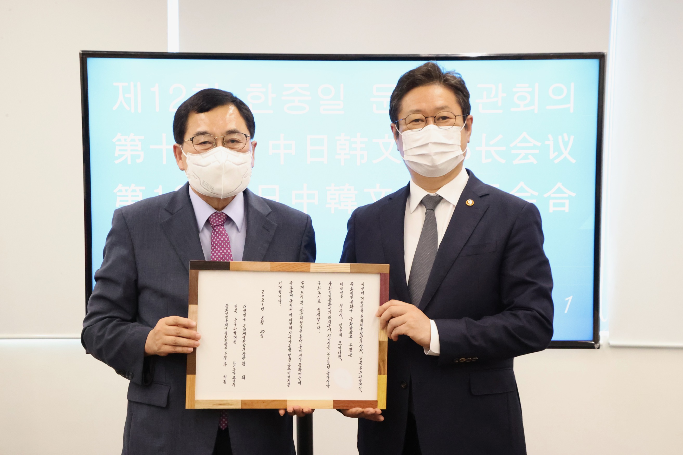 【경주=미디어인경북】 김동철 기자 = 30일 서울 국립현대미술관에서 온라인으로 진행된 제12회 문화장관회의에서 경주시를 비롯해 중국 원저우시와 지난시, 일본 오이타현이 ‘2022년 동아시아문화도시’로 공식 선포됐다.