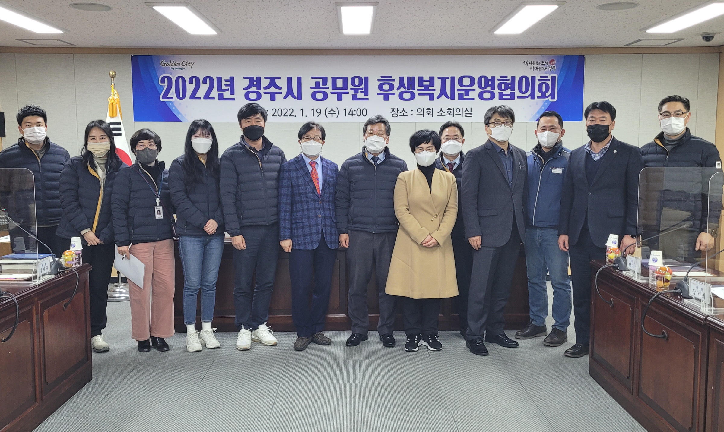 | ↑↑ 19일 열린 2022년 경주시 공무원 후생복지운영협의회에서 참석자들이 기념촬영을 하고 있다 / 사진제공=경주시 |