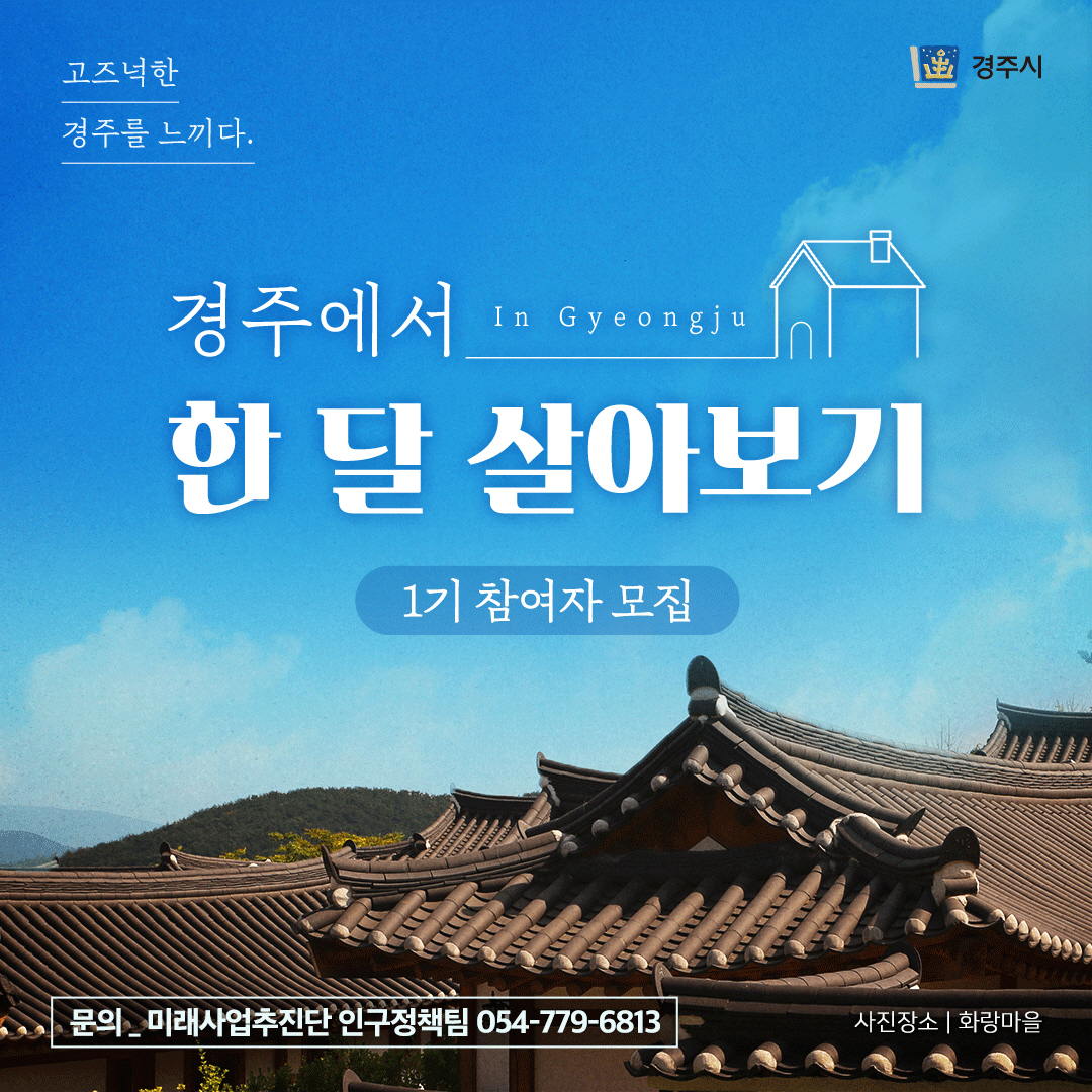 【경주=미디어인경북】 사회부 기자 = 경주시는 아름다운 천년고도를 직접 체험할 수 있는 ‘경주에서 한 달 살아보기’ 프로그램 참여자를 모집한다고 2일 밝혔다.