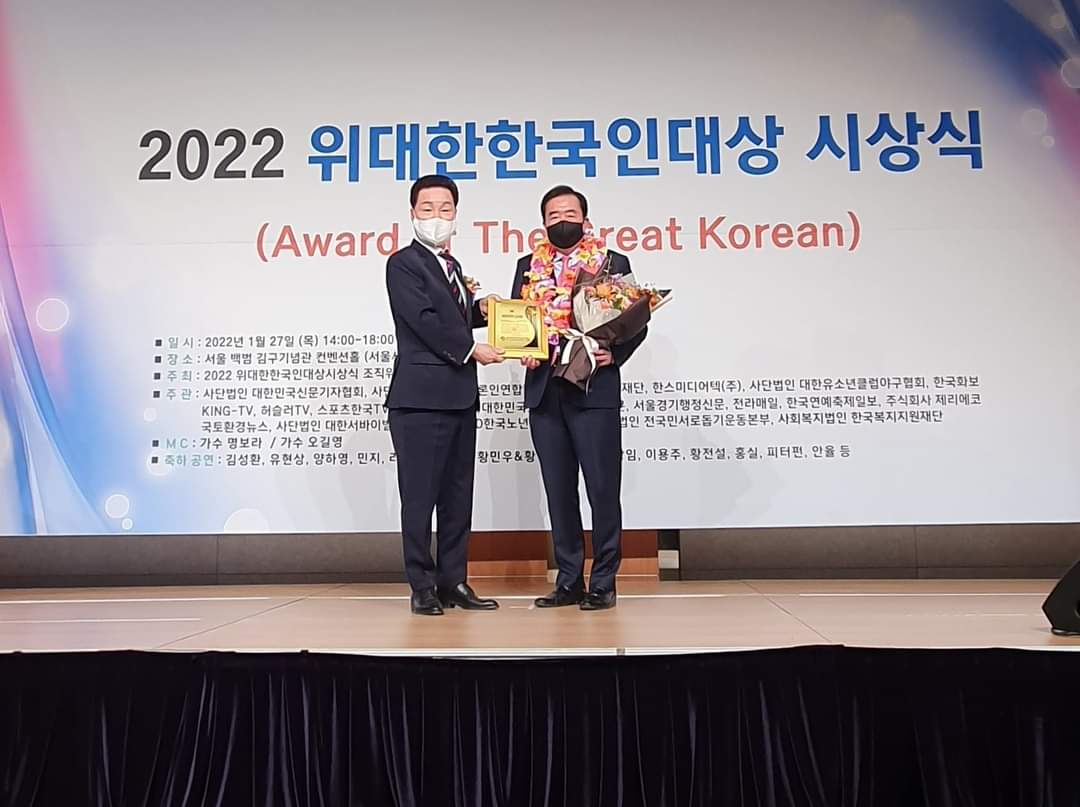 | ↑↑ 임활 경주시의회 경제도시위원, 2022 위대한 한국인대상 수상 포즈를 취하고 있다. / 사진제공=경주시의회 |