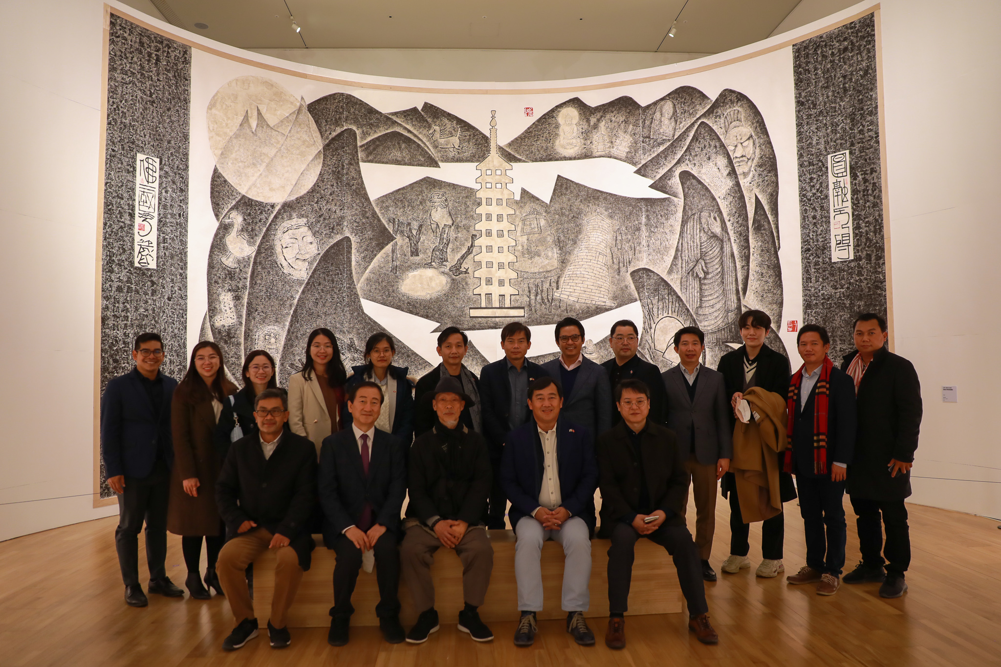 | ↑↑ 수스 야라 캄보디아 국회 외교 위원장 등 관계자 일행이 경주엑스포 솔거미술관에서 기념사진을 찍고있다 / 사진제공=경주엑스포 |