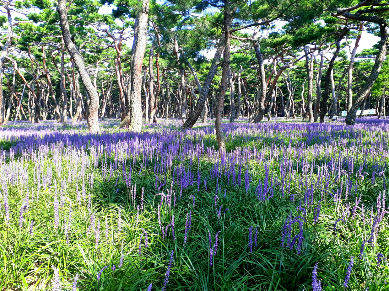 | ↑↑ 황성공원 소나무숲 산책로 맥문동 전경 / 사진제공=경주시 |